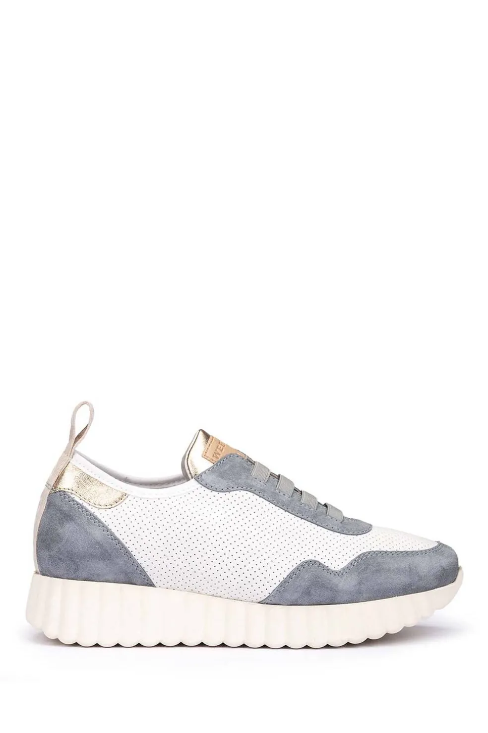 Zapato Weekend con cierre de elásticos, plataforma de 3 cm (aproximádamente). Combina diferentes texturas para hacer un zapato dinámico para el día a día.