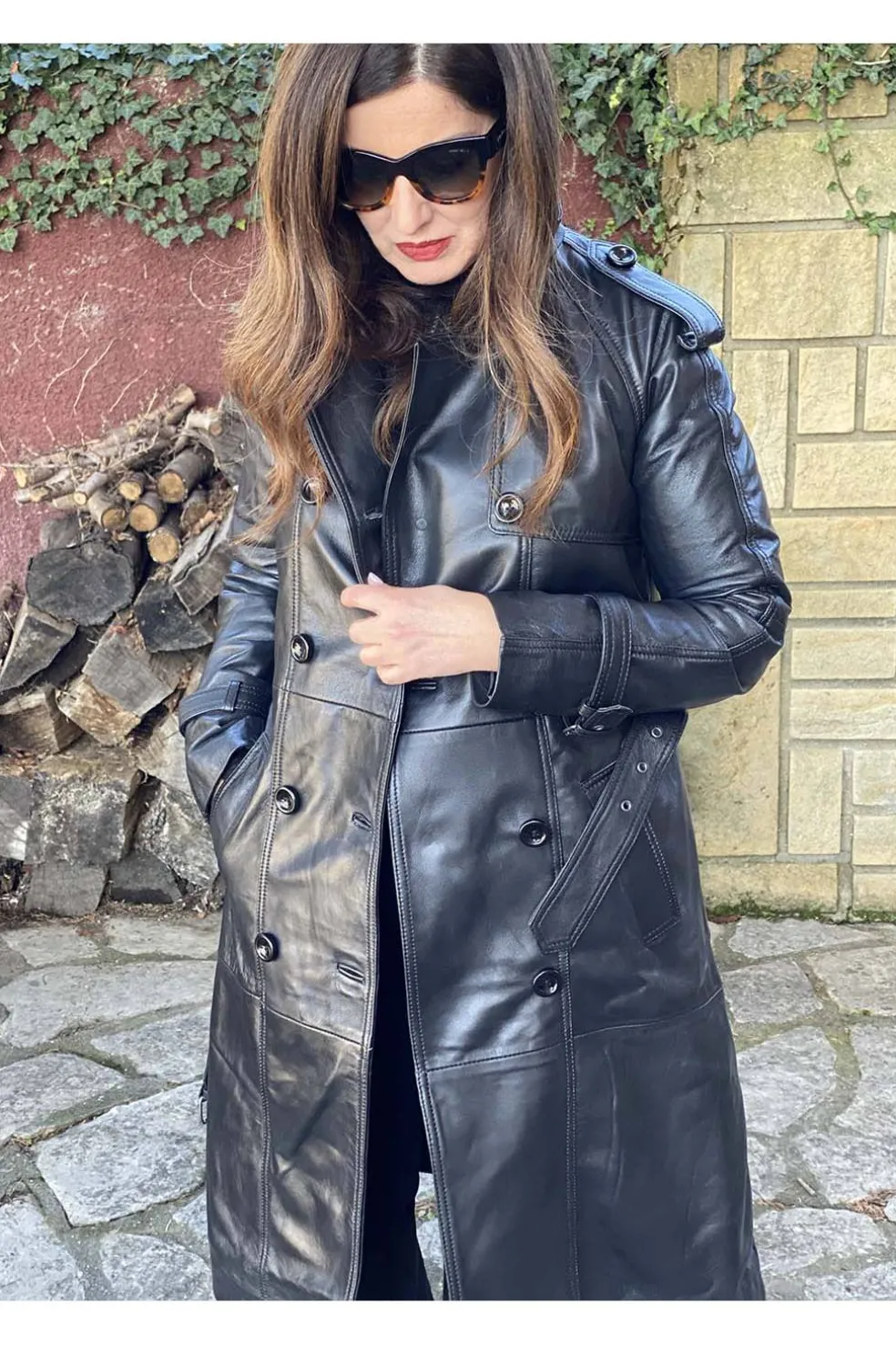 Descubre el abrigo de piel negro de alta calidad de la marca MDP, una prenda imprescindible para la mujer moderna. Con un elegante cierre de botones y un cinturón que permite un ajuste perfecto, este abrigo realza la silueta con estilo. Su diseño incluye un bolsillo interior para mayor comodidad y un ajuste con hebilla en las mangas, que aporta un detalle único.