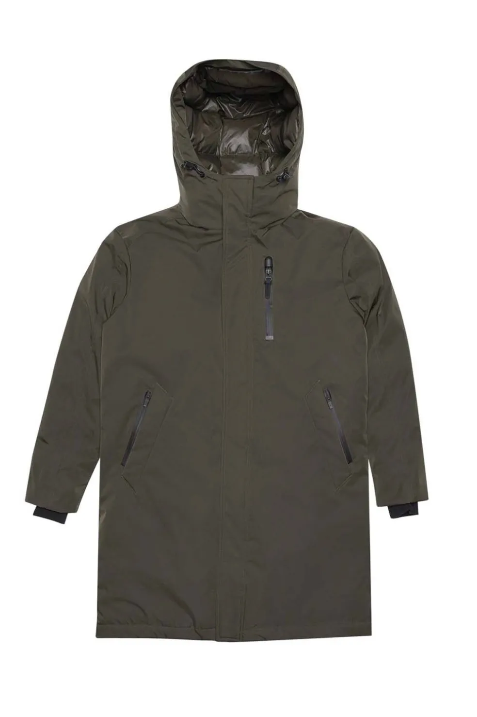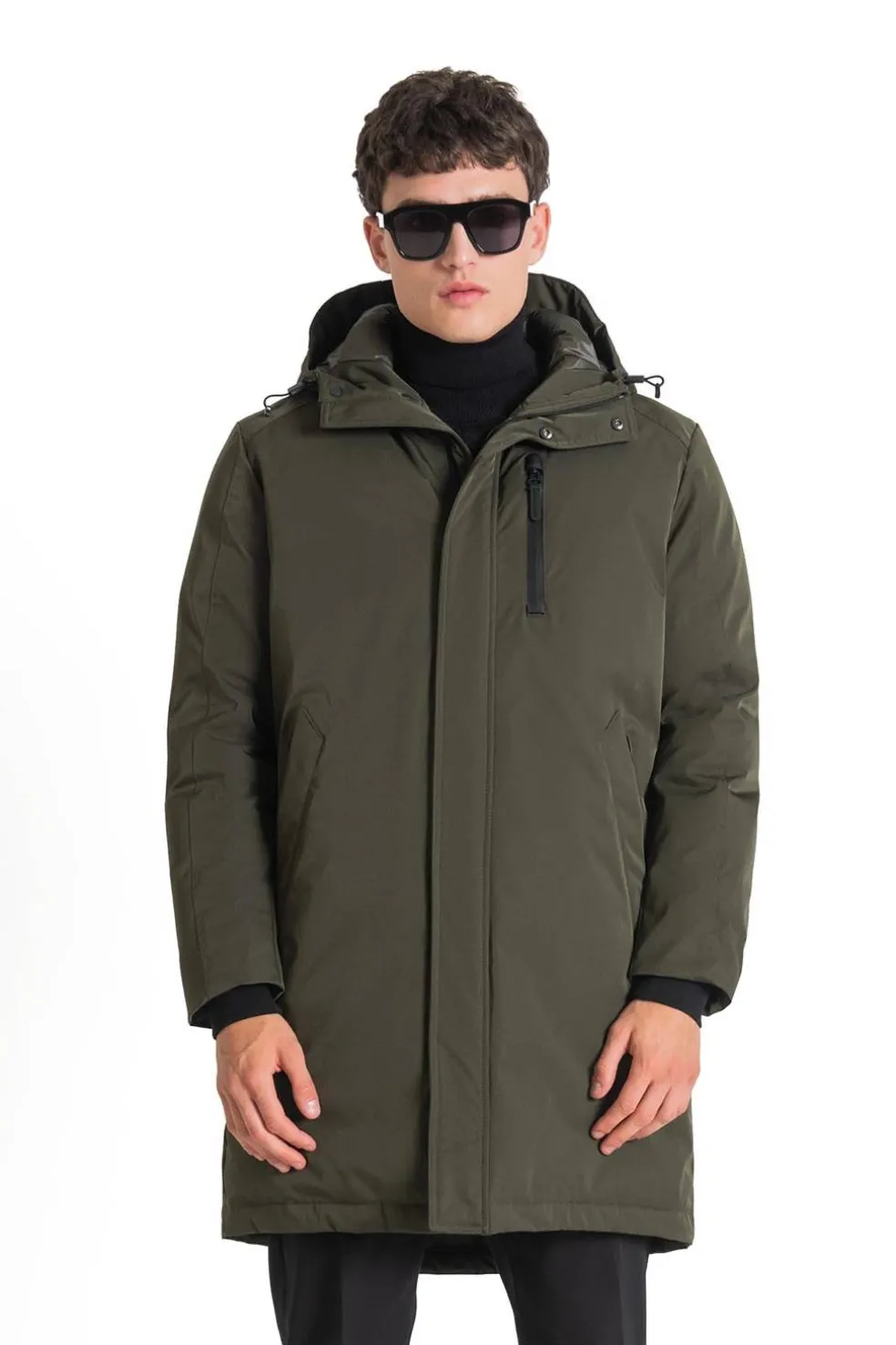 Incluso los días más fríos tendrán que rendirse ante esta chaqueta de corte regular. Confeccionado en tejido técnico de color liso con cálido acolchado ecosostenible, este modelo está diseñado con tres bolsillos con cremallera, dos laterales y uno en el pecho. La chaqueta con capucha presenta una aplicación de punto en los puños que garantiza una comodidad superior. El cierre central con cremallera oculta completa la prenda exterior, un aliado indispensable de tus conjuntos de invierno metropolitanos y no metropolitanos.