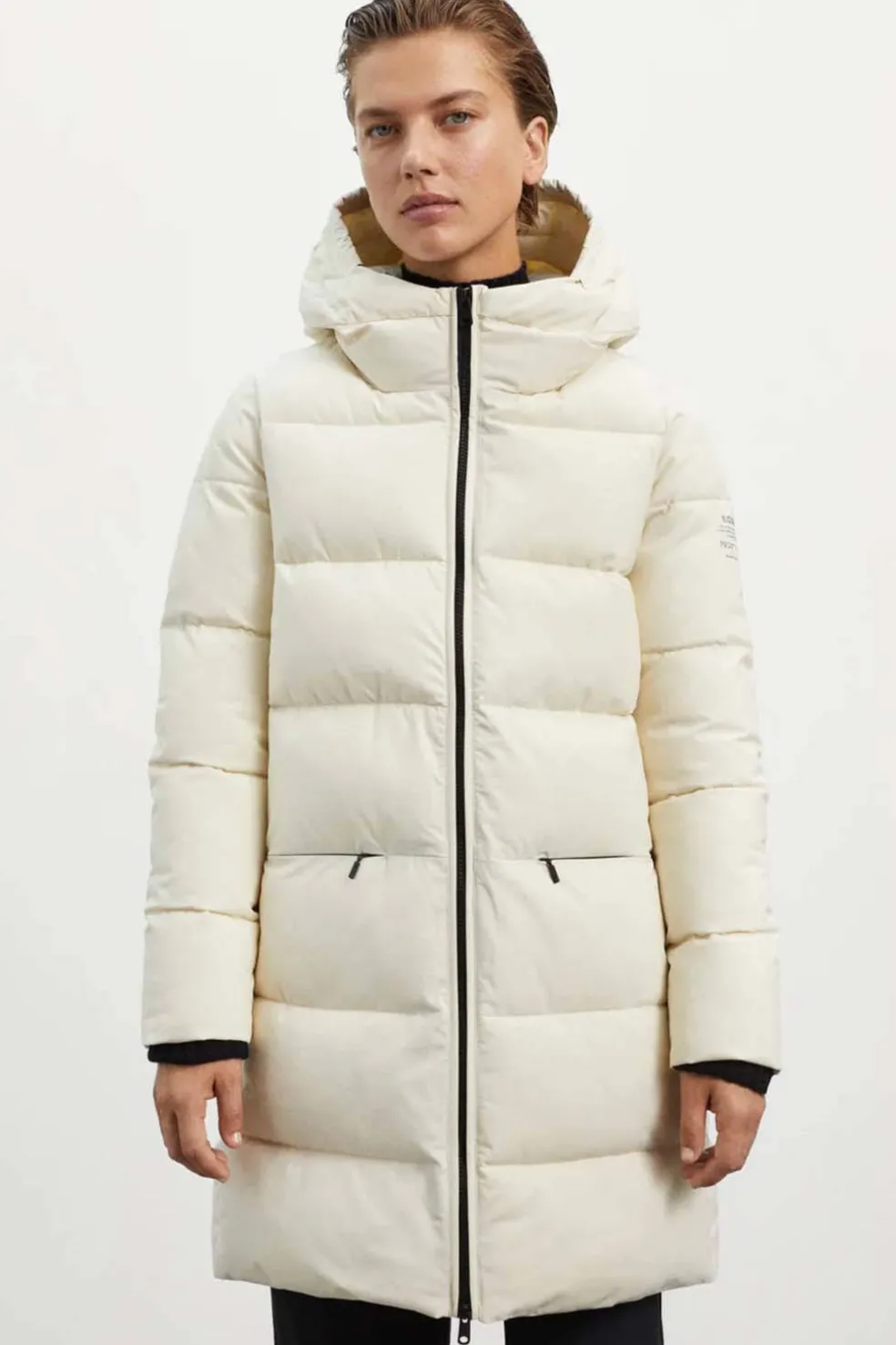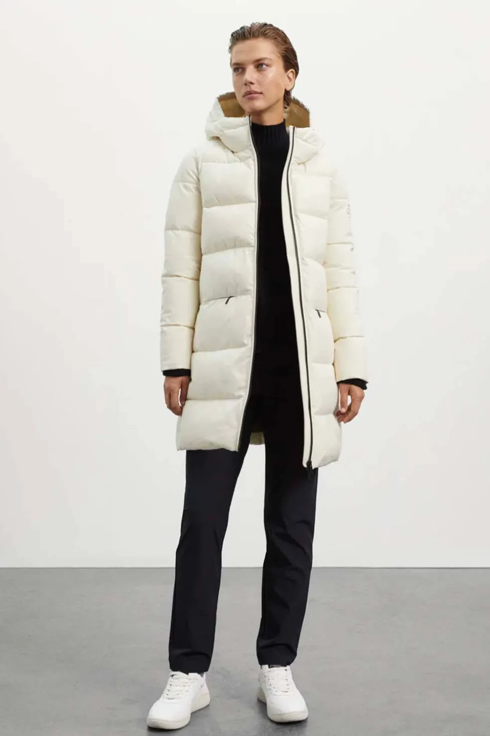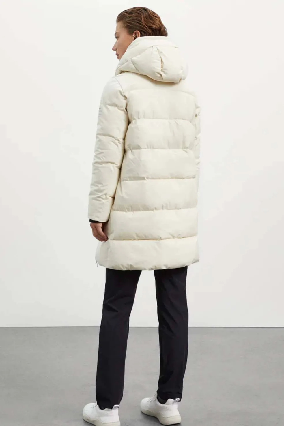 El abrigo Ecoalf Salin en color blanco combina diseño urbano y compromiso ambiental. Fabricado con poliéster reciclado procedente de botellas de plástico, ofrece una excelente protección frente al frío y la humedad gracias a su tejido impermeable 5K y transpirable 5K.