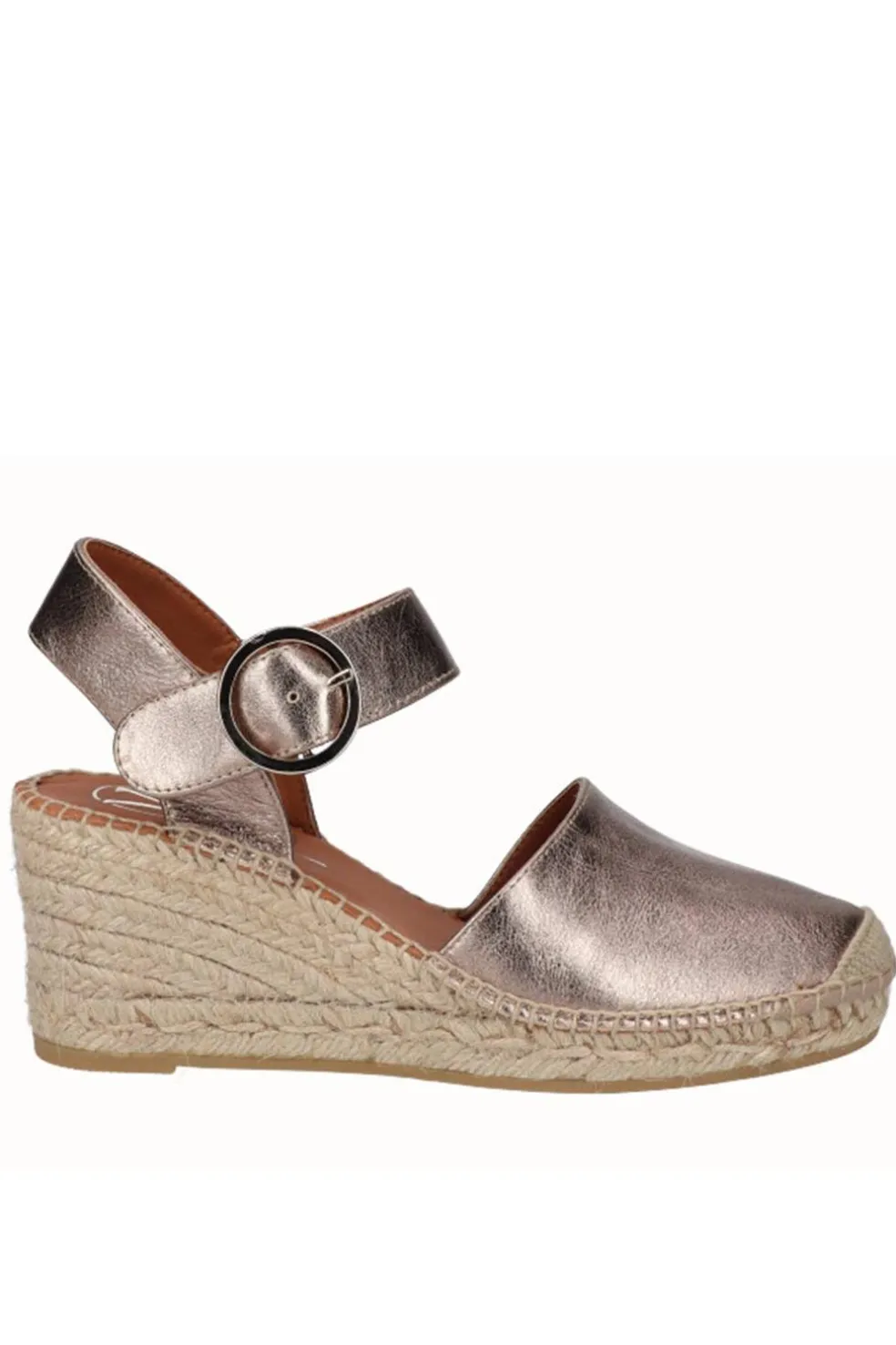 Alpargata valenciana con pulsera al tobillo, cuña de yute de 7 cm y plantilla de piel acolchada, fabricadas en piel de alta calidad. Ajuste óptimo mediante hebilla. Comodidad, durabilidad y versatilidad de un calzado 100% español. Cuenta con la garantía de calidad de Alpargatas Viguera.