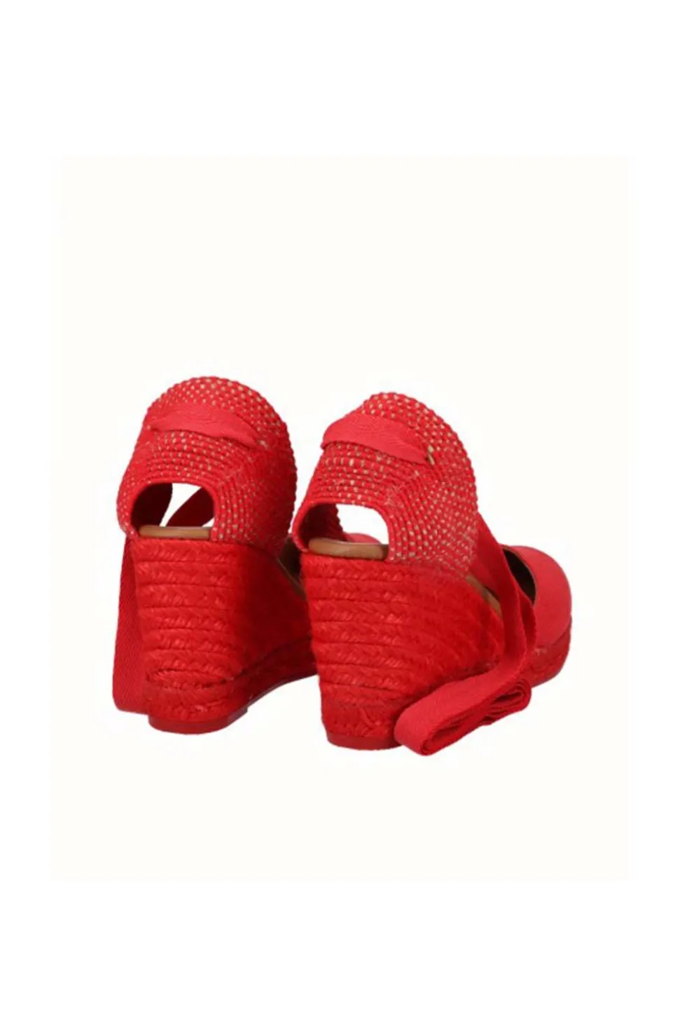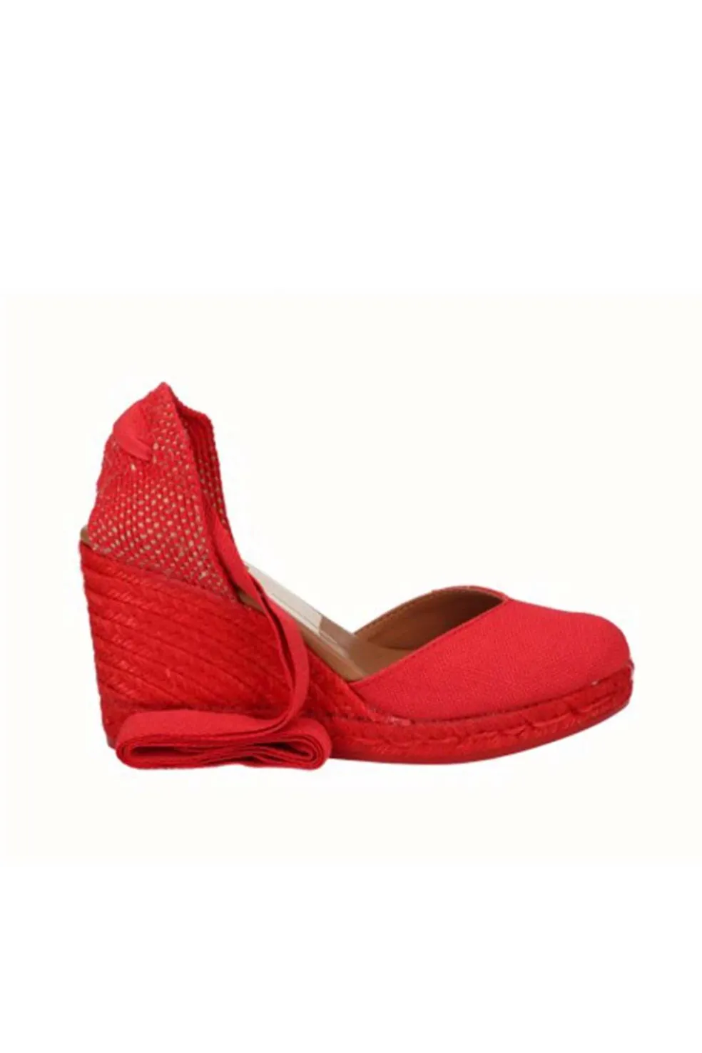 Alpargata valenciana con cintas, cuña alta de yute de 9 cm, de los cuales 6,5 cm son de cuña y 2,5 cm de plataforma. Fabricadas en lino de alta calidad y con plantilla de piel acolchada. Comodidad, durabilidad y versatilidad de un calzado 100% español.