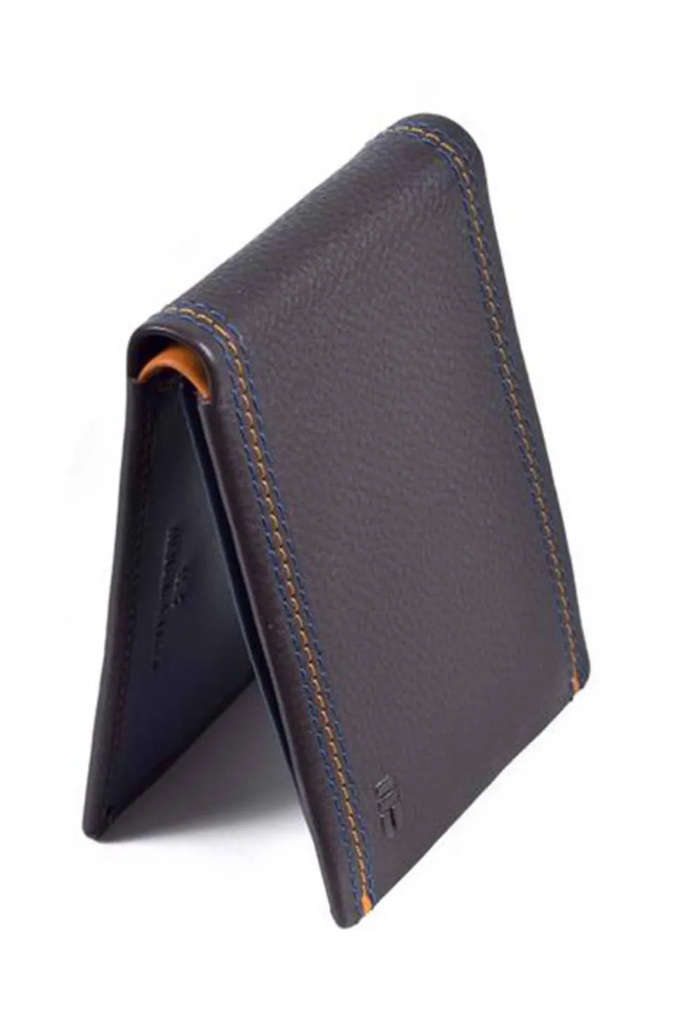 Billetero de piel de vacuno. Este modelo contiene bolsillo para billetes y siete ranuras para tarjetas. Pespuntes en ligero contraste en el exterior. Sello con la identificación de marca grabado a fuego. Está protegida con sistema de bloqueo RFID para evitar el escaneo, lectura y pagos no autorizados.