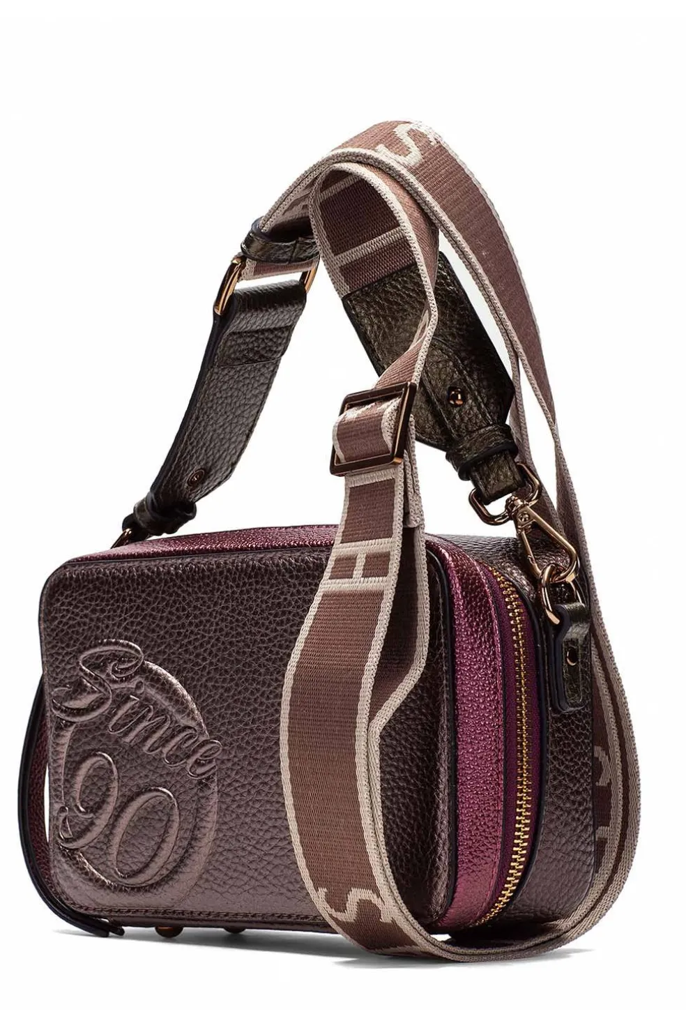 Elegante y sofisticado, este bolso estructurado de Hispanitas combina estilo y funcionalidad en un diseño compacto. Fabricado en PU con detalles metalizados, destaca por su cierre de cremallera que asegura tus pertenencias y su correa extensible que permite llevarlo al hombro o tipo bandolera. En su interior, cuenta con un compartimento con cierre de cremallera y un forro con detalles del logo de la marca, ofreciendo organización y un acabado cuidado. El detalle frontal rinde homenaje al 35 aniversario de Hispanitas con la inscripción “Since 90”, convirtiéndolo en un bolso especial y con carácter.