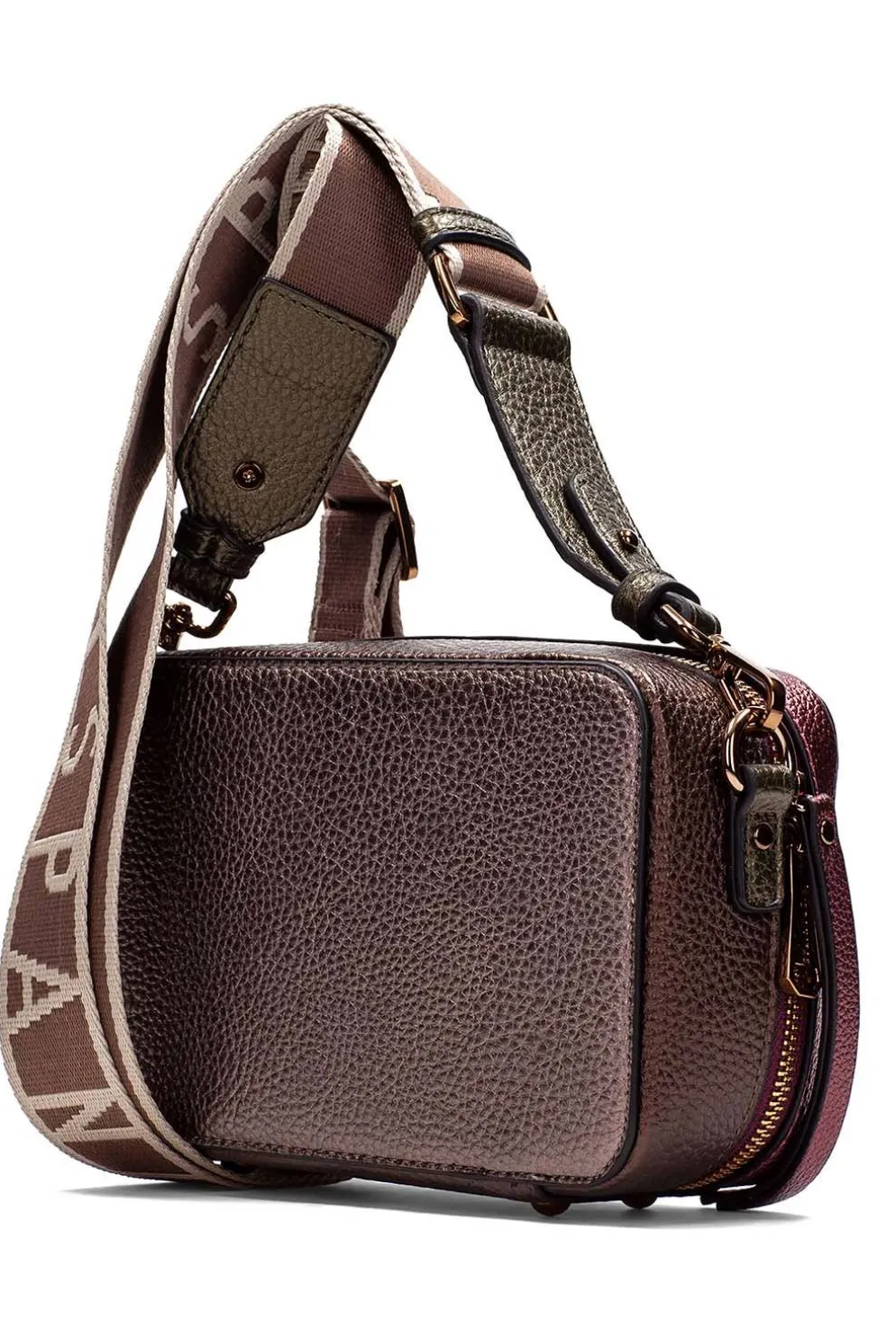 - Fabricado en PU con detalle metalizado.