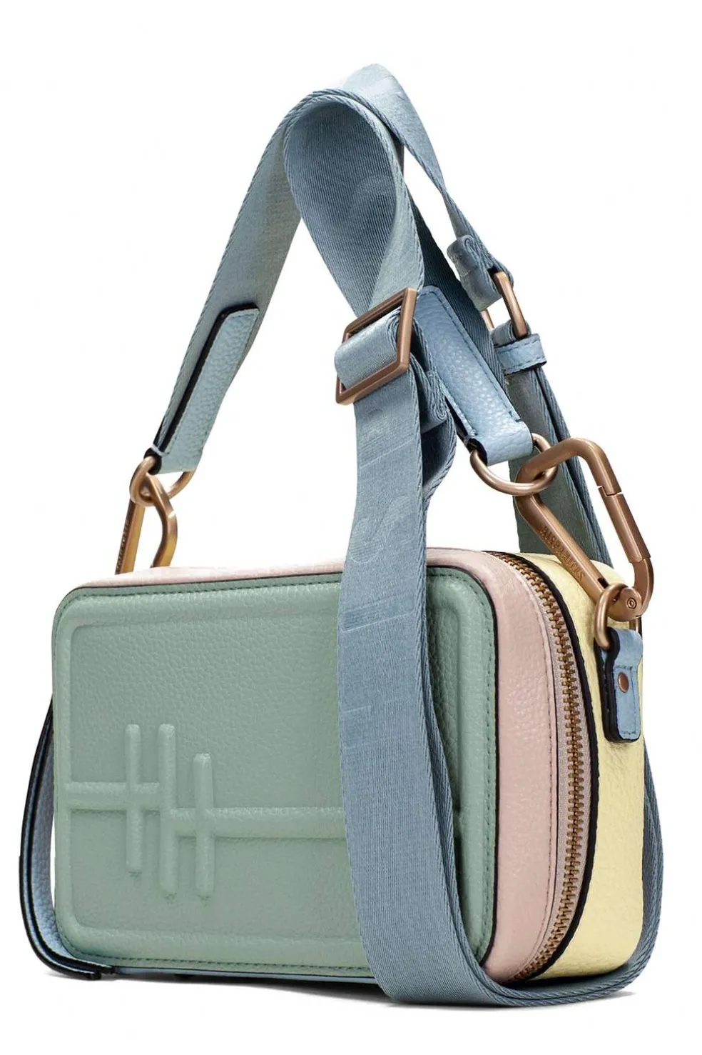 Bolso compacto. Correa ajustable con herrajes metálicos dorados para un ajuste cómodo y personalizado. Cierre con cremallera en dorado, que asegura el contenido del bolso. Logo grabado en relieve en la parte frontal, añadiendo un toque distintivo. Perfecto para complementar looks casuales o formales, manteniendo un estilo versátil y funcional.