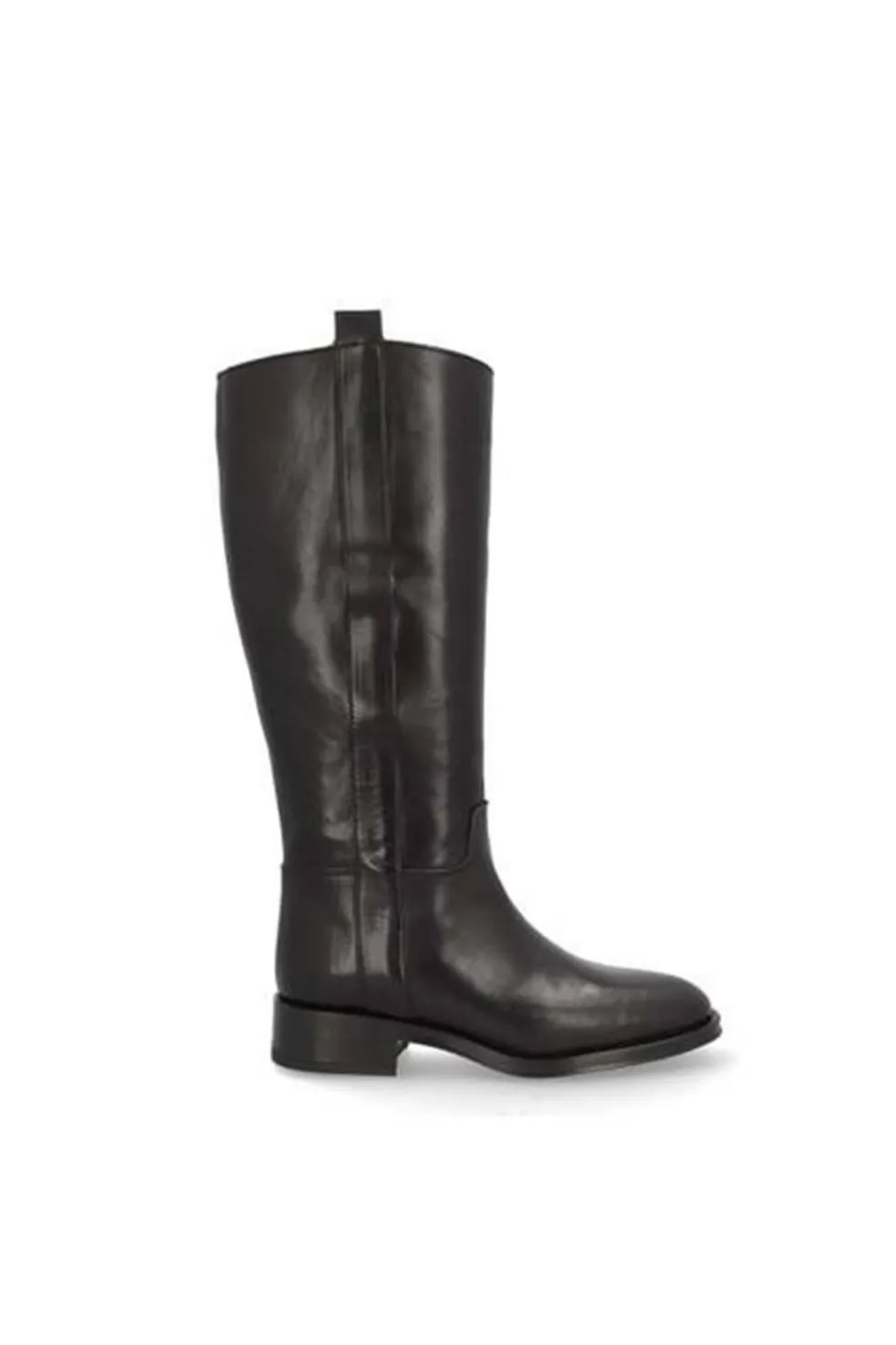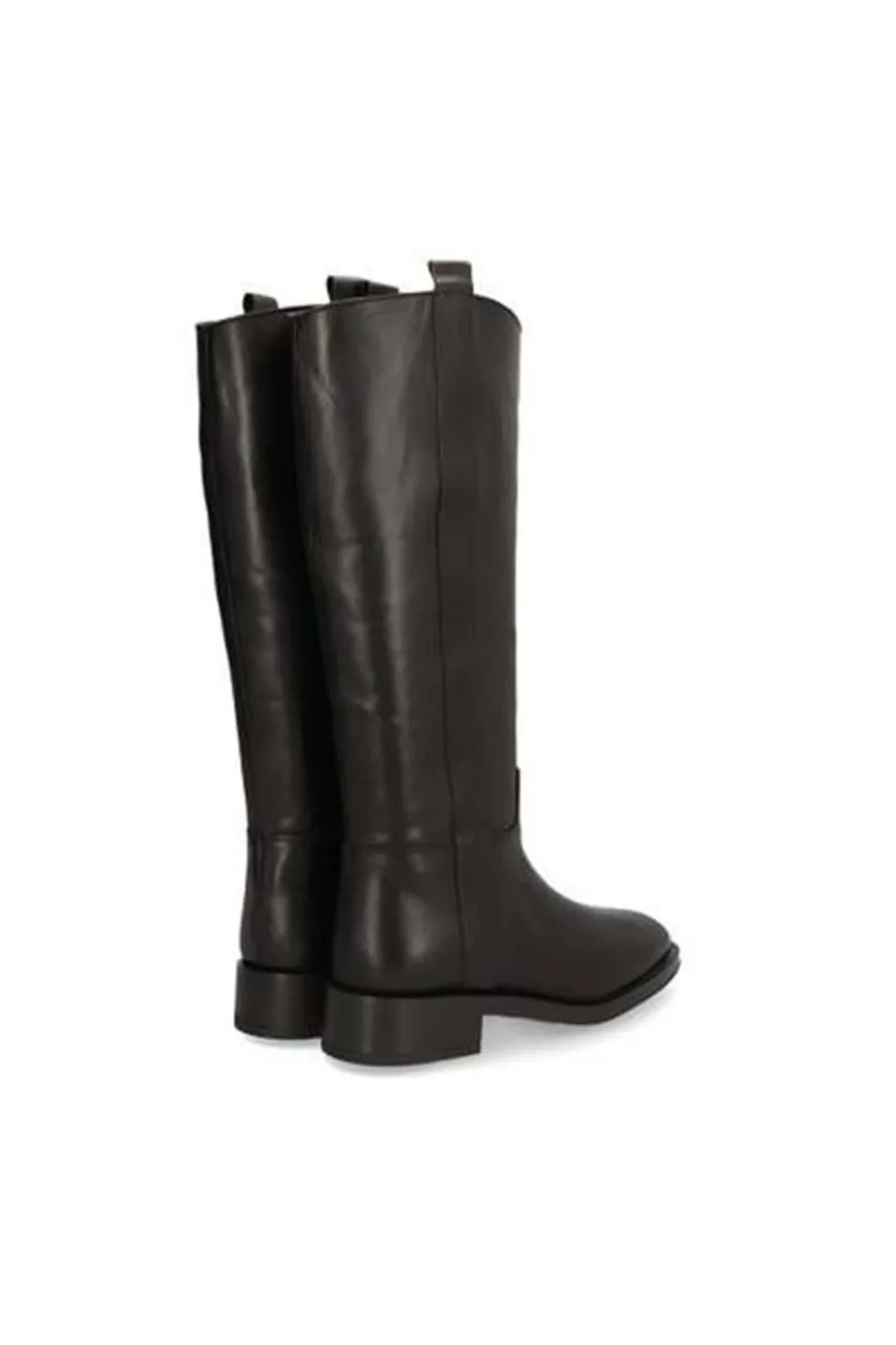 Bota para mujer ALPE COUTURE, fabricada en piel (becerro) de color negro con tacón de 3.5 cm, suela antideslizante y puntera redondeada.