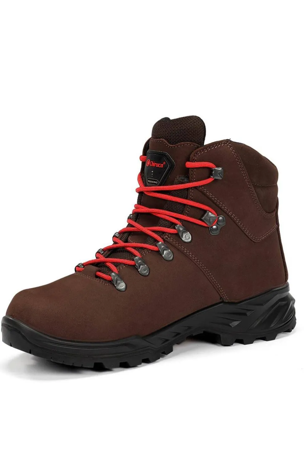 Bota aconsejada para la práctica de trekking ligero. Adecuada para terrenos poco escarpados y senderos. Una bota de alta gama de piel nobuck, membrana Gore-Tex impermeable y transpirable; y con entresuela de poliuretano y patín Vibram® que proporciona amortiguación y adherencia. Peso: 567 gramos