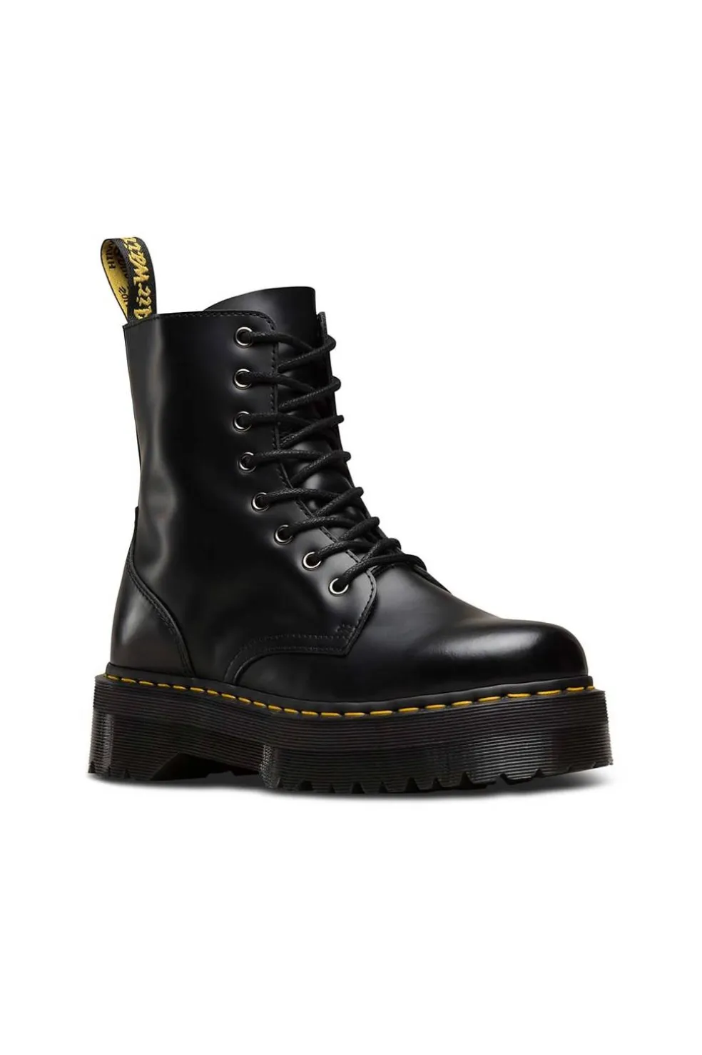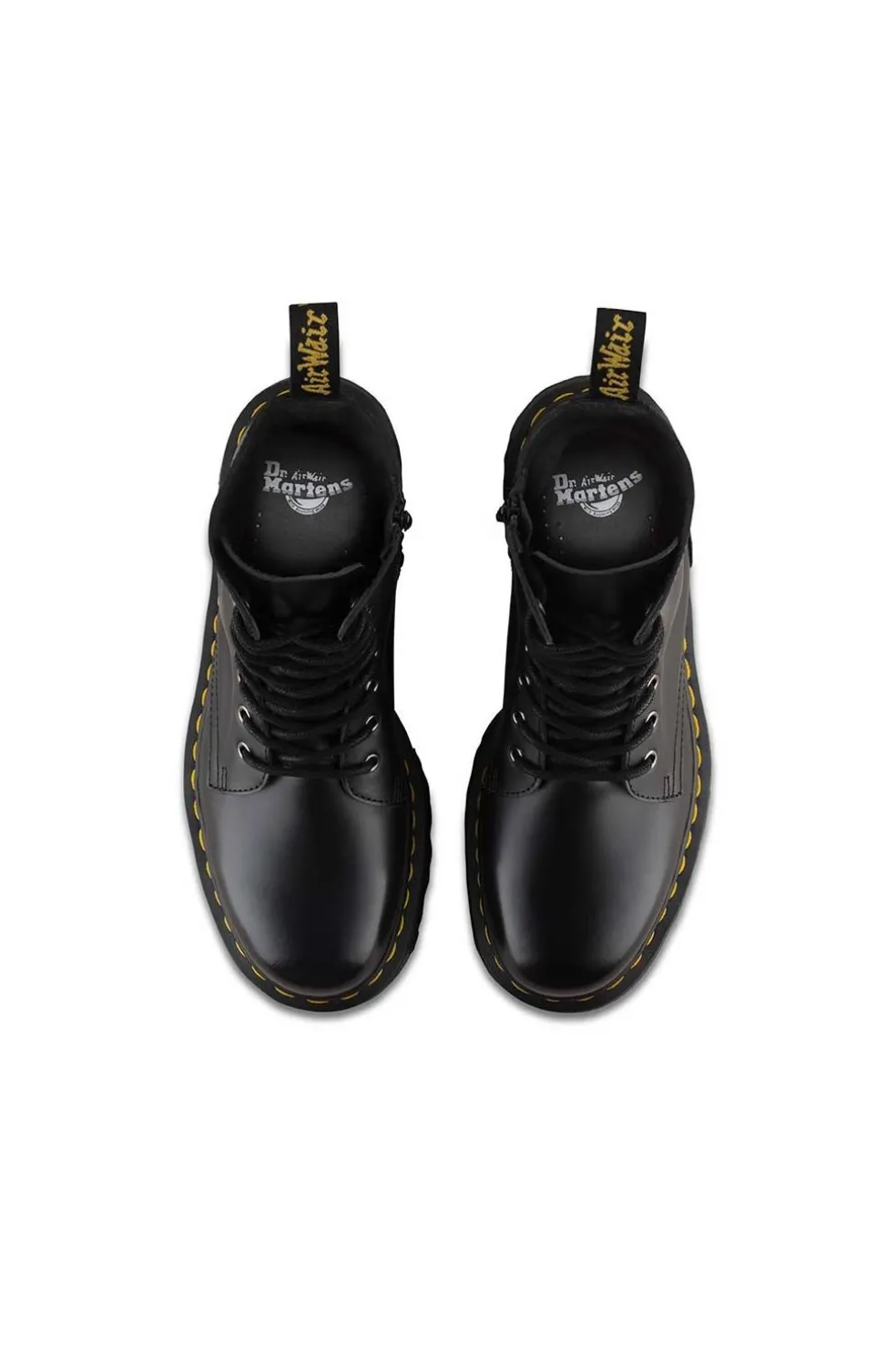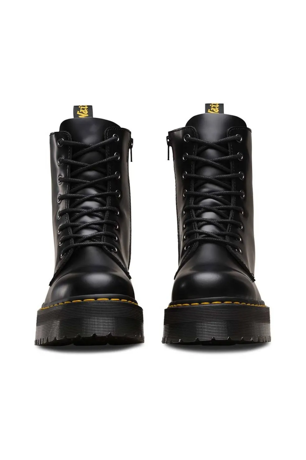 ¿Buscas algo atrevido? No busques más. Nuestra bota Jadon encarna 6 décadas de la actitud y el ADN de Dr. Martens en una espectacular silueta con plataforma. Inspirada en nuestra bota Original de 8 ojales, la bota Jadon está fabricada con piel lisa Smooth que puedes encerar o no, tú decides. La imponente suela Quad está realza con nuestro característico pespunte amarillo y el tirador de talón. El cierre de cremallera interior hace que sean fáciles de poner y quitar. Creada para envalentonar. Nuestra imponente suela Quad eleva nuestras siluetas al siguiente nivel. Para personas que no temen marcar la diferencia. Altura aproximada de la plataforma: 5,08 cm