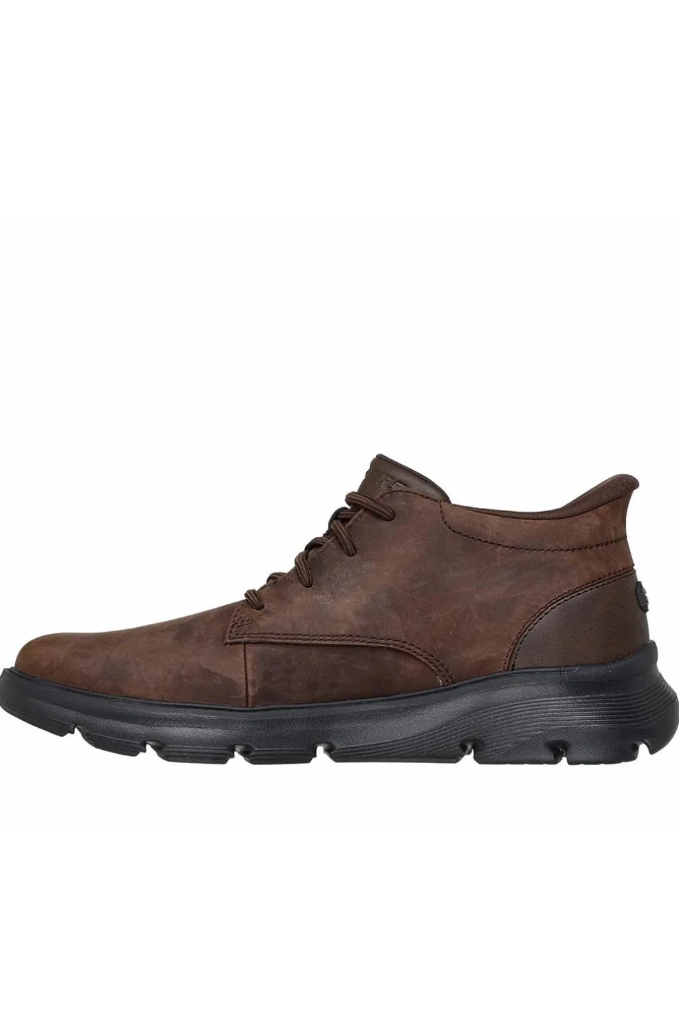 Pasa del look de oficina al de salir a cenar fácilmente con las Skechers Hands Free Slip-ins® Relaxed Fit™: Arch Fit Garza – Ridley. Diseñada con nuestra exclusiva Heel Pillow, esta amplia bota chukka slip-on ha recibido el sello de aceptación de la APMA y cuenta con una parte superior de piel con punta redondeada, capas superpuestas sintéticas, cordones elásticos fijos y una cómoda plantilla Air-cooled Arch Fit.