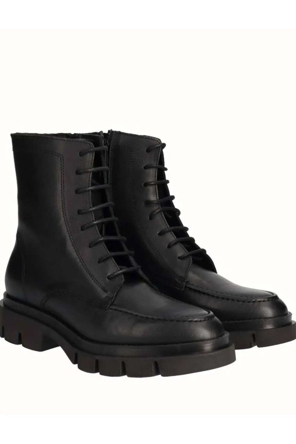 Bota estilo militar de piel Viguera en color negro, confeccionada en piel lisa de gran calidad que aporta resistencia y un look moderno con carácter. Cuenta con cierre de cremallera lateral para un calce rápido y práctico, manteniendo la estética robusta típica del estilo militar. Su tacón de 4 cm ofrece una altura cómoda y estable, mientras que la caña de 20 cm aporta sujeción y protección. Un diseño versátil que combina funcionalidad y tendencia, ideal para dar fuerza a tus looks urbanos.