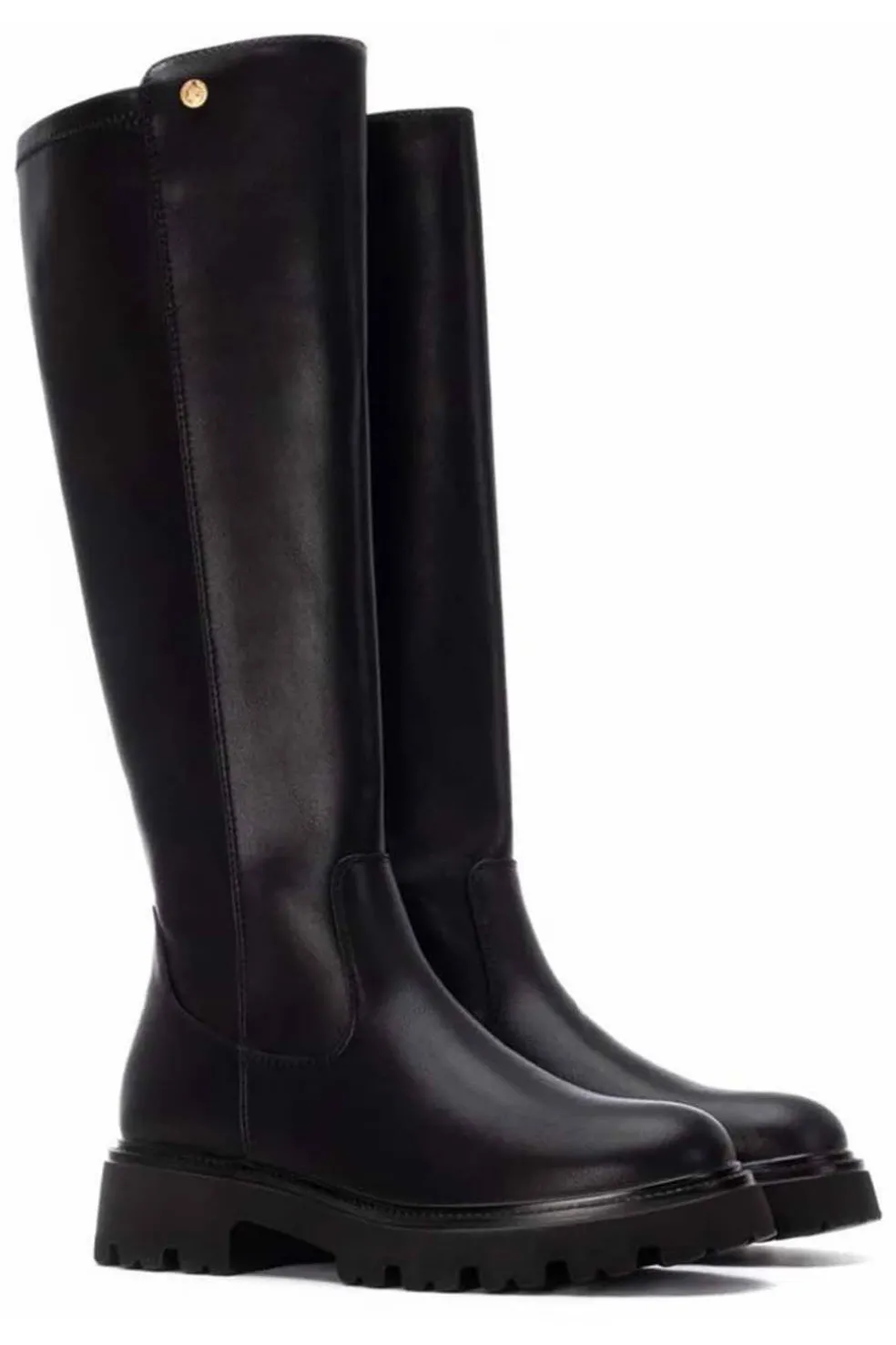 Bota de mujer, de la marca Xti. Fabricada en material que imita la piel, esta bota ofrece un acabado elegante y sofisticado, con una textura suave y duradera. Su diseño elástico asegura un ajuste perfecto a la pierna, proporcionando comodidad durante todo el día. Ideal para aquellos días en los que buscas confort sin sacrificar estilo, esta bota es versátil y fácil de combinar con diferentes looks, además de contar con suela antideslizante para mayor seguridad al caminar. Con plantilla extraíble.