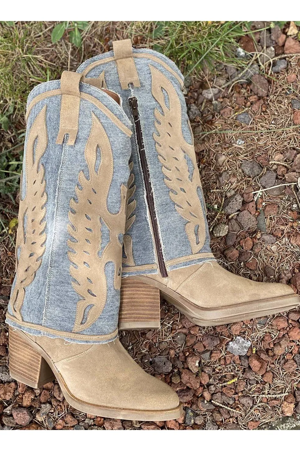 Disfruta de las últimas tendencias con las botas Nemonic 2381. Suela de goma con la puntera en ante. Detalles en la caña sobre un fondo vaquero, dándole un toque auténtico. Bonita chapa metálica en el tacón.