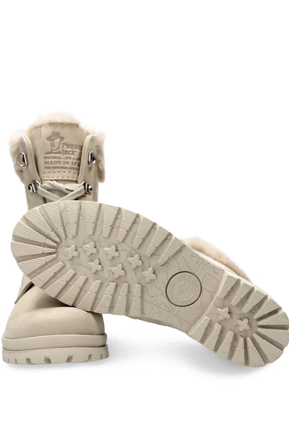 Bota de mujer de Panama Jack con forro de pelo, que ofrece un tacón de 4,5 cm y una altura de caña de 20 cm. Presenta un cierre de cordones hasta el tobillo para un ajuste seguro y cómodo. Su suela antideslizante proporciona estabilidad en diferentes superficies. Este calzado es de fabricación nacional, combinando calidad y estilo.