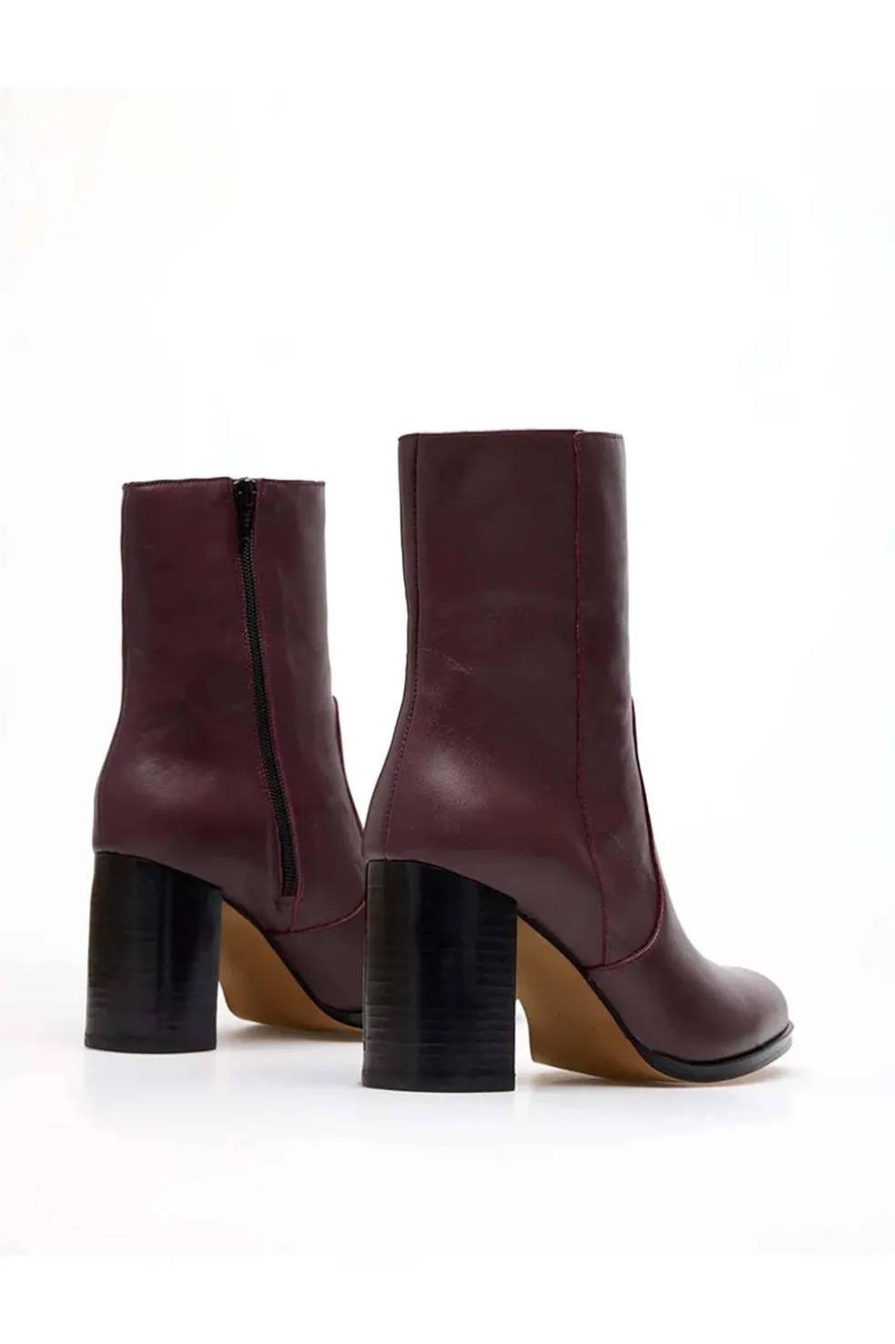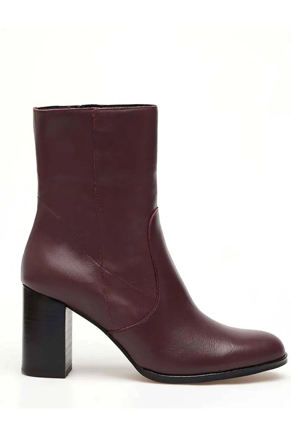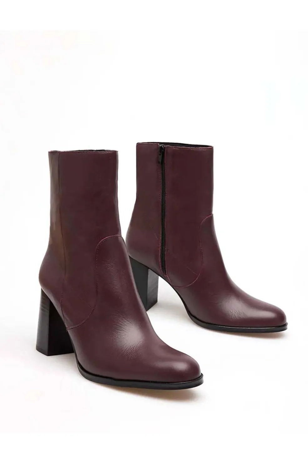 Botín piel de mujer con puntera redondeada y cierre con cremallera lateral.