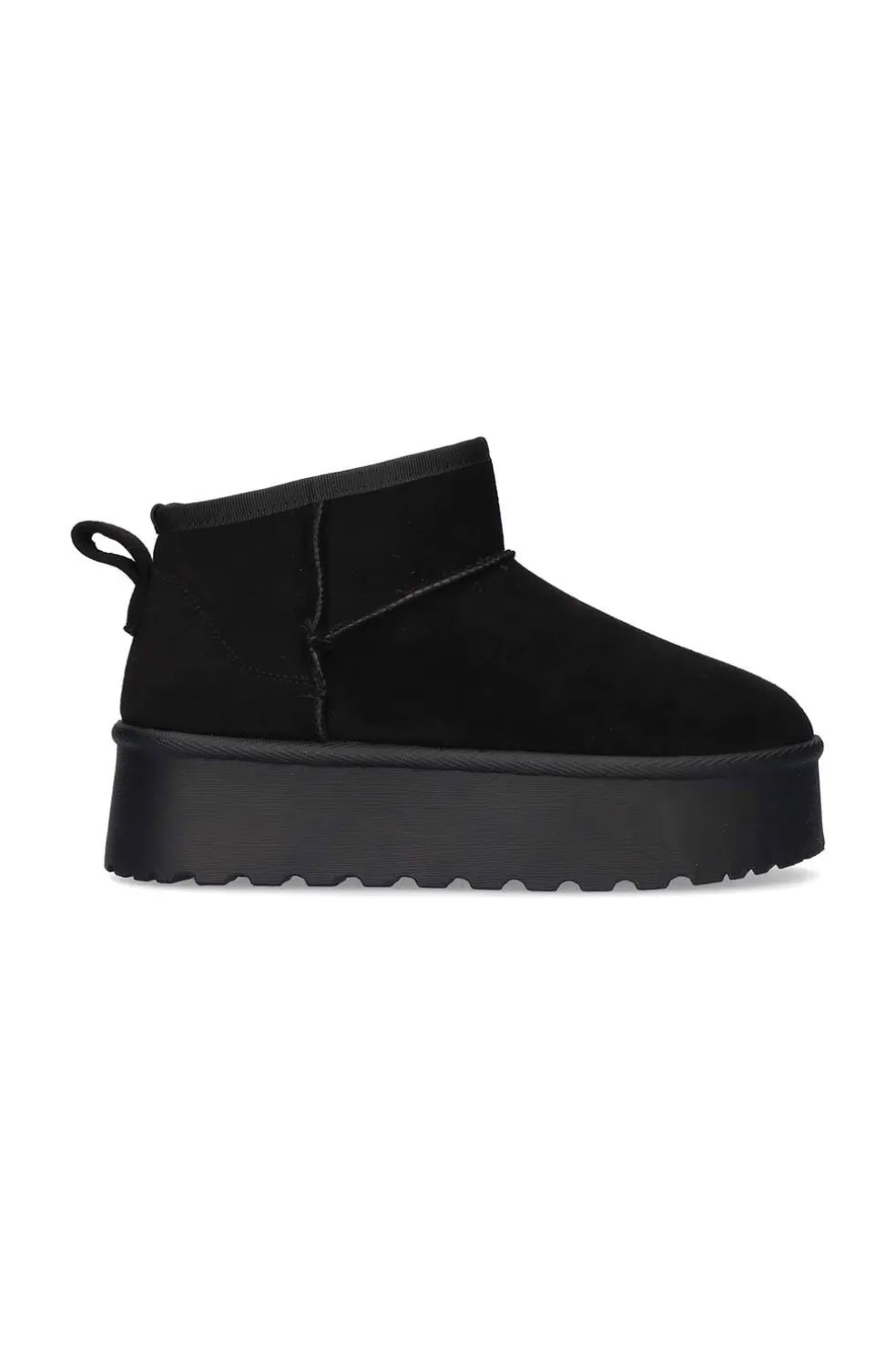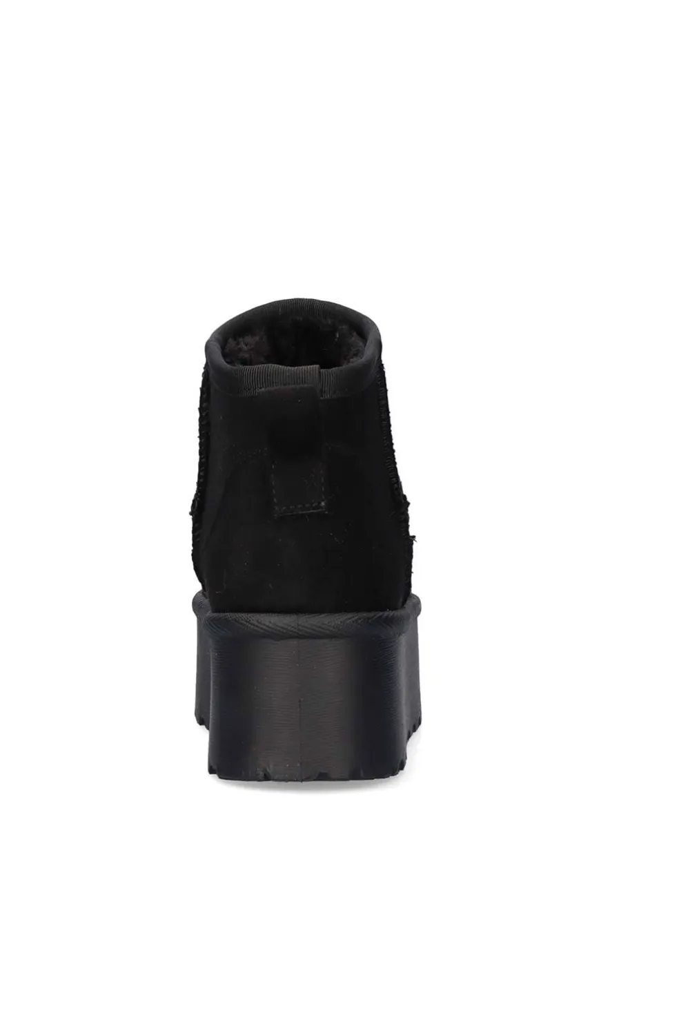 Botín estilo australiana en color negro.Plataforma de 5,5 cm y altura de la caña de 14 cm. Interior de pelo cálido .