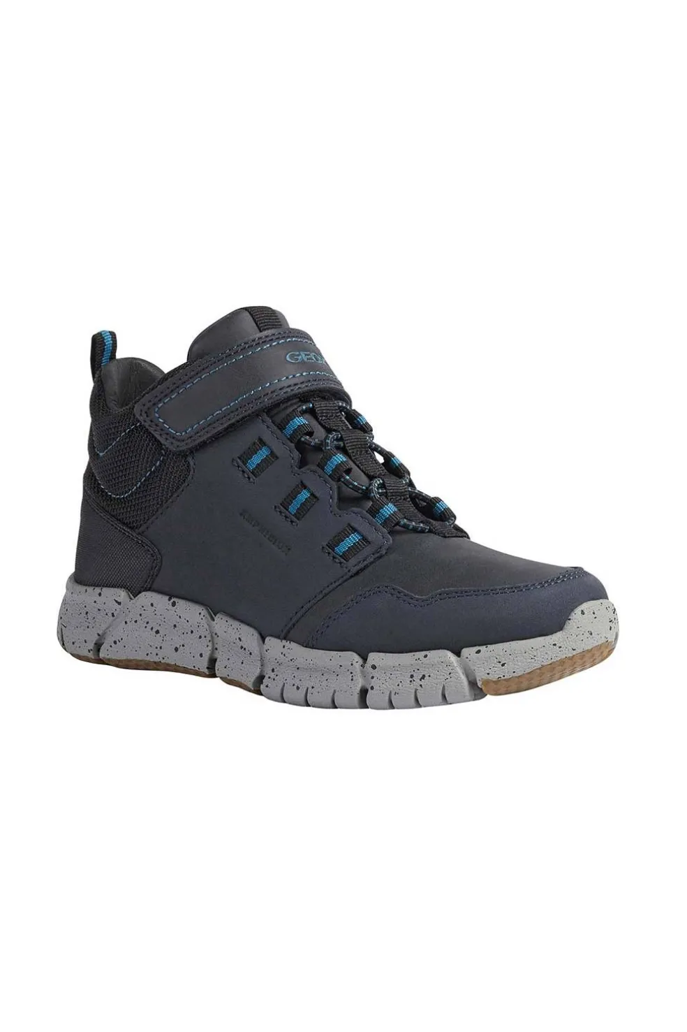 Botín de niño cálido, cómodo y waterproof, proporciona una amortiguación superior. El botín Flexyper ABX se distingue por su empella de nobuk y nailon de color azul marino y aguamarina, realzada por detalles outdoor y combinada con una innovadora suela que proporciona flexibilidad, amortiguación y estabilidad a cada paso.