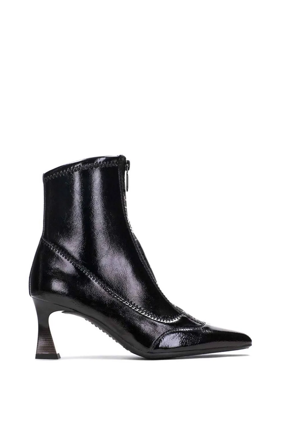 Botín de punta fina con diseño strech que permite un perfecto ajuste al pie. Tacón de 6,5cm de altura y cierre de cremallera en el empeine con el nombre de la marca. Este zapato incorpora la tecnología TRIFLOW, amortigua cada paso aportando flexibilidad y confort en la pisada, gracias a su triple almohadillado.