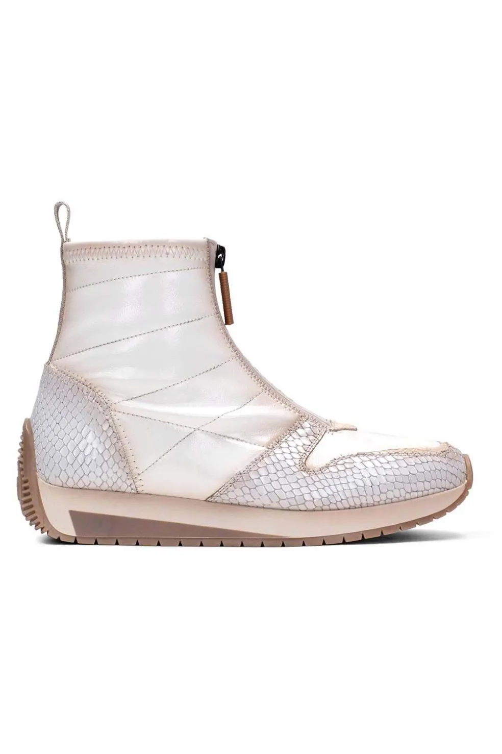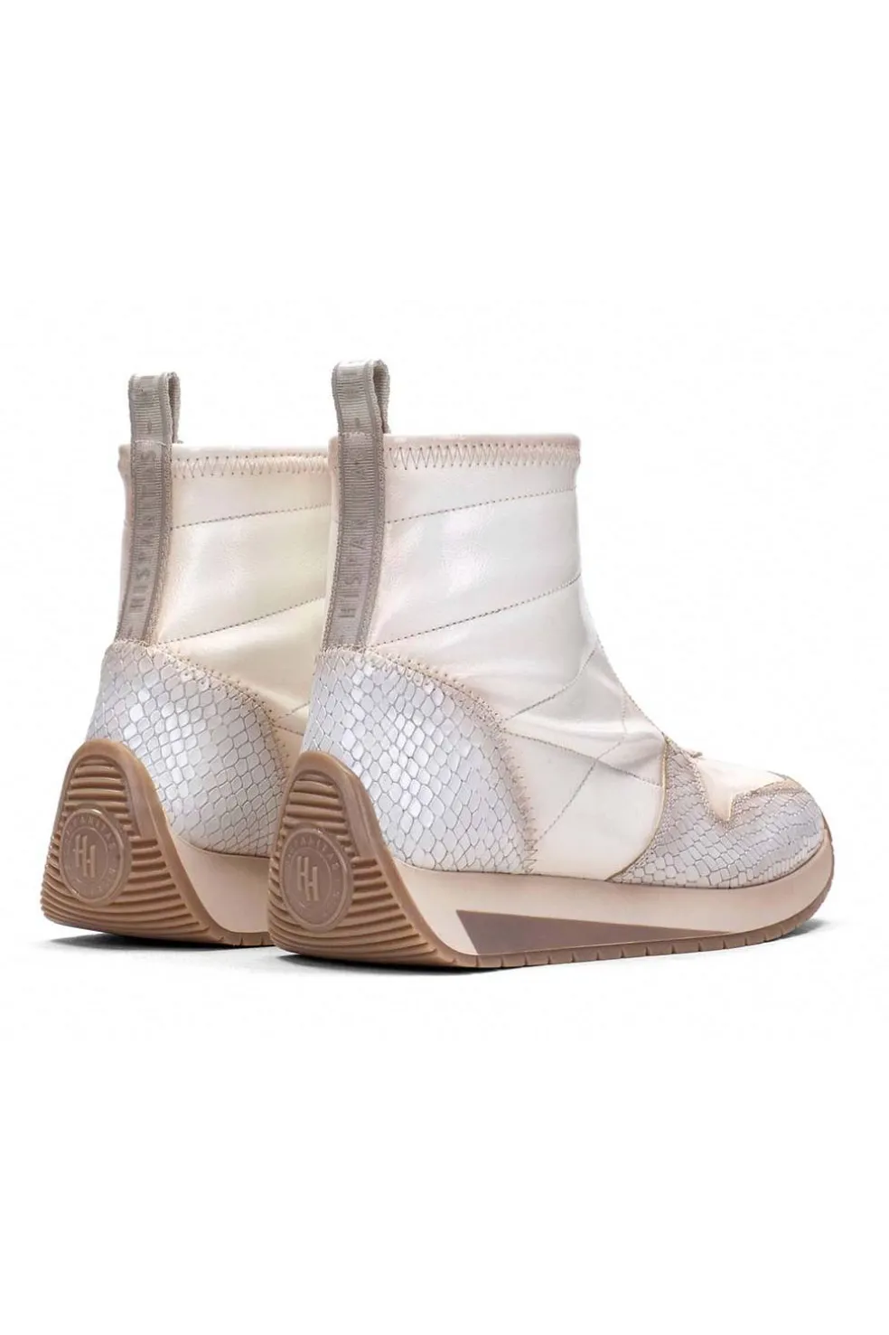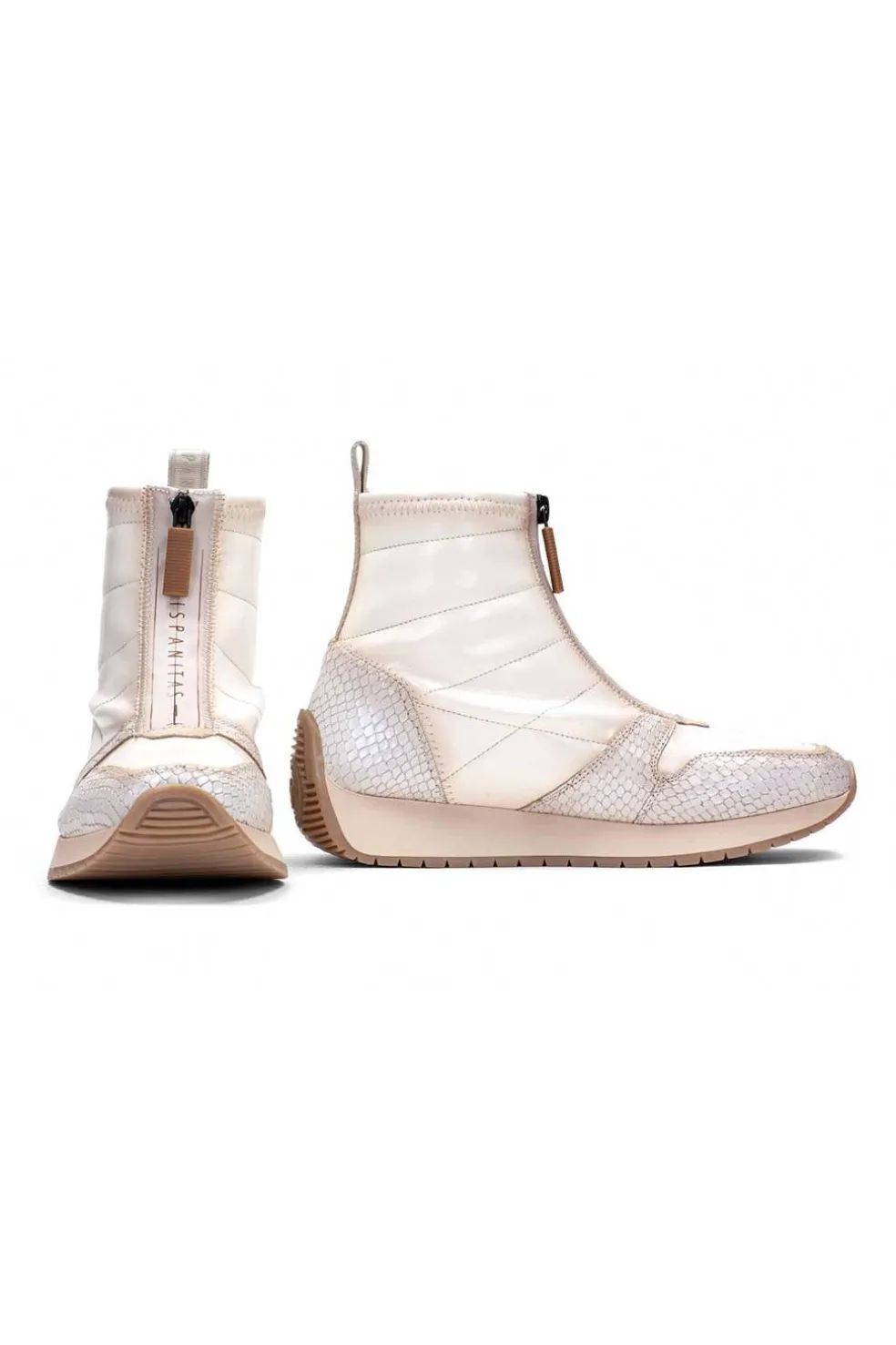 Botín Hispanitas con 3 cm de plataforma y 17 cm de altura de caña. Tiene cierre de cremallera en la parte frontal y suela de goma antideslizante.