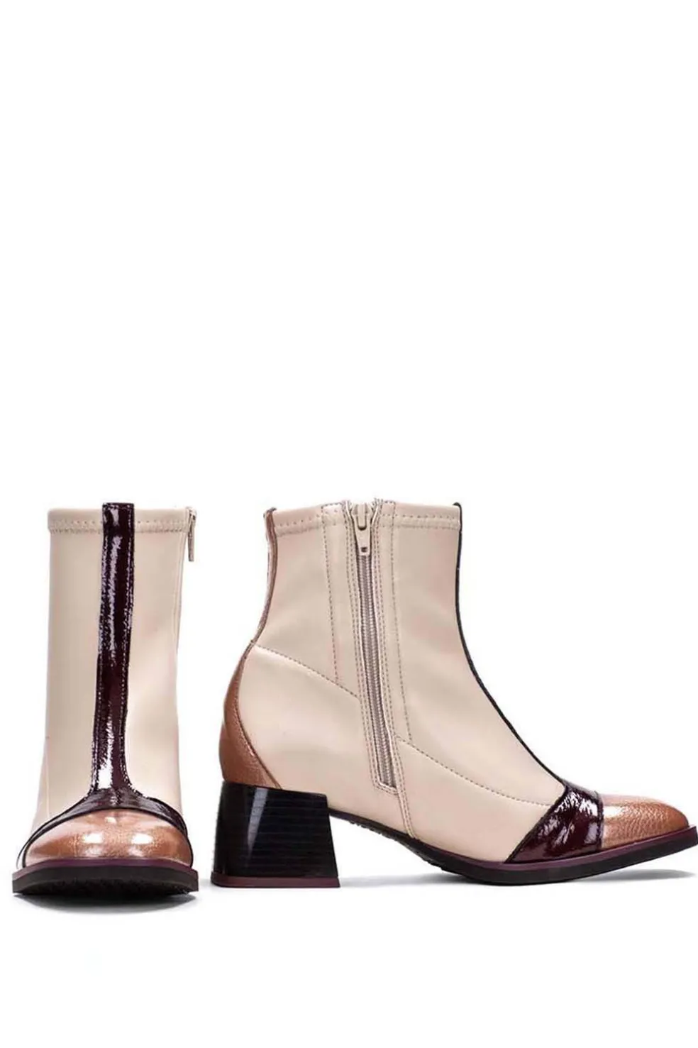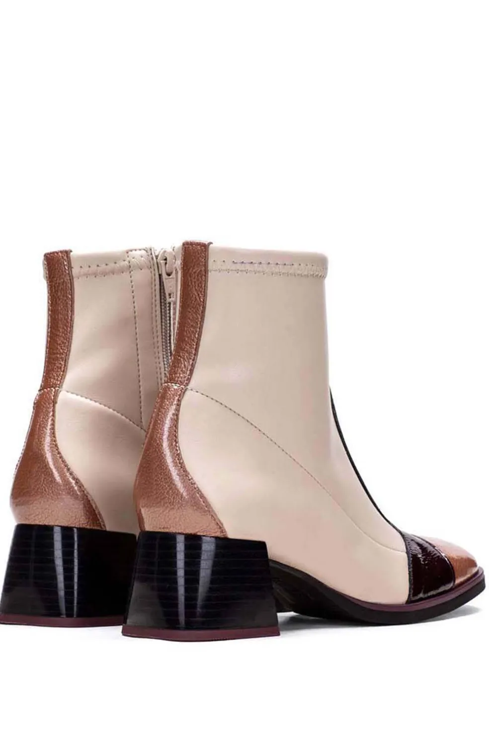 Botín de punta redonda con diseño strech que permite un perfecto ajuste al pie. Tacón de 5 cm de altura y cierre de cremallera en el empeine con el nombre de la marca. Este incorpora la tecnología TRIFLOW, y además cuenta con plantilla extraíble.