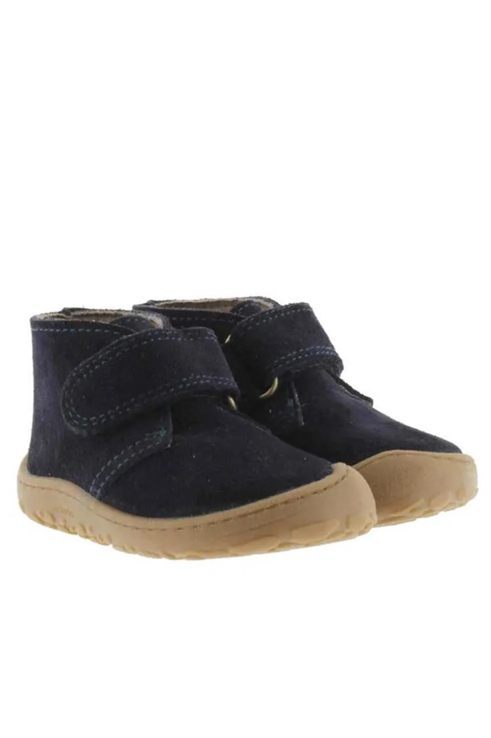 Botines barefoot para niños fabricados en España en piel suave de alta calidad. Además, llevan consigo la distinción de una medalla de plata en la certificación LWG (Leather Working Group), que garantiza un proceso de curtición responsable, con un uso eficiente de agua, energía y una gestión de residuos sostenible. Pespuntes en contraste. Cierre con tira adherente que facilita el calce y aporta sujección. Suela flexible en color caramelo.