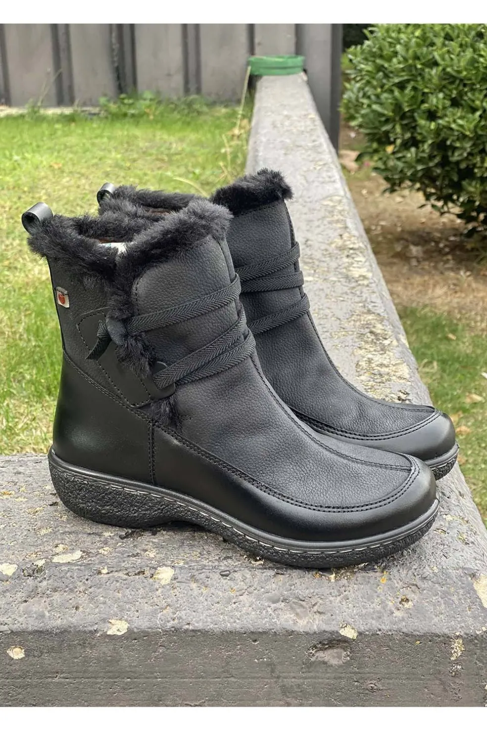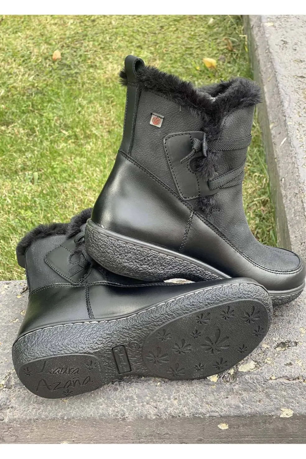 Botas de invierno con un diseño muy especial, donde hemos combinado elementos de los más variados, como dos tipos de pieles que da forma a esta bota de media caña, las cintas elásticas del empeine, el pelo por todo el contorno superior o las costuras exteriores que adornan el conjunto.