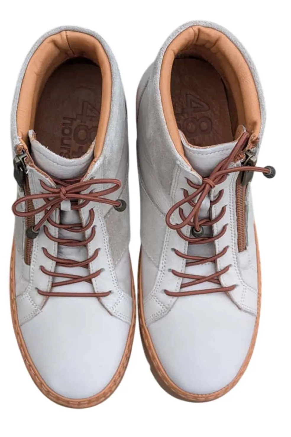 Botín de mujer 48 Hours en piel color tierra, pensado para ofrecer confort y estilo en el uso diario. Cuenta con cordones elásticos que se ajustan perfectamente al pie y una cremallera lateral que facilita el calce. Su suela de goma aporta flexibilidad y buen agarre, mientras que las plantillas de gel proporcionan una pisada suave y cómoda durante todo el día. Un modelo versátil, práctico y con un diseño actual perfecto para cualquier look.