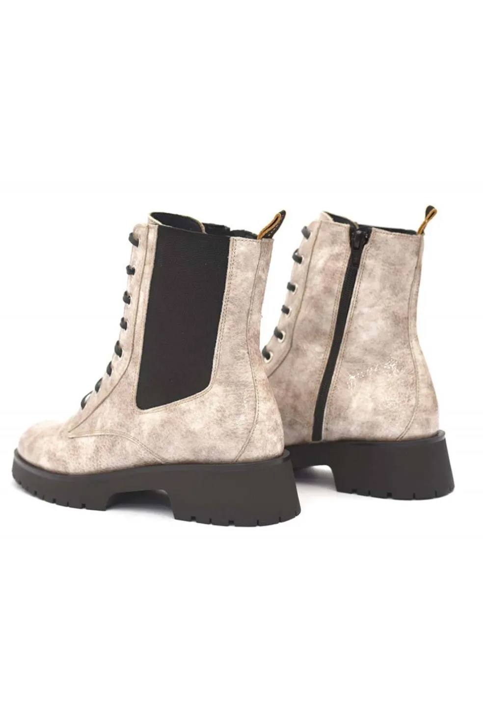 Bota de media caña de piel confort para mujer REBECA52253. Calzado hecho en piel de vacuno, con cierre de cordones y suela de caucho antideslizante. Hecho en España