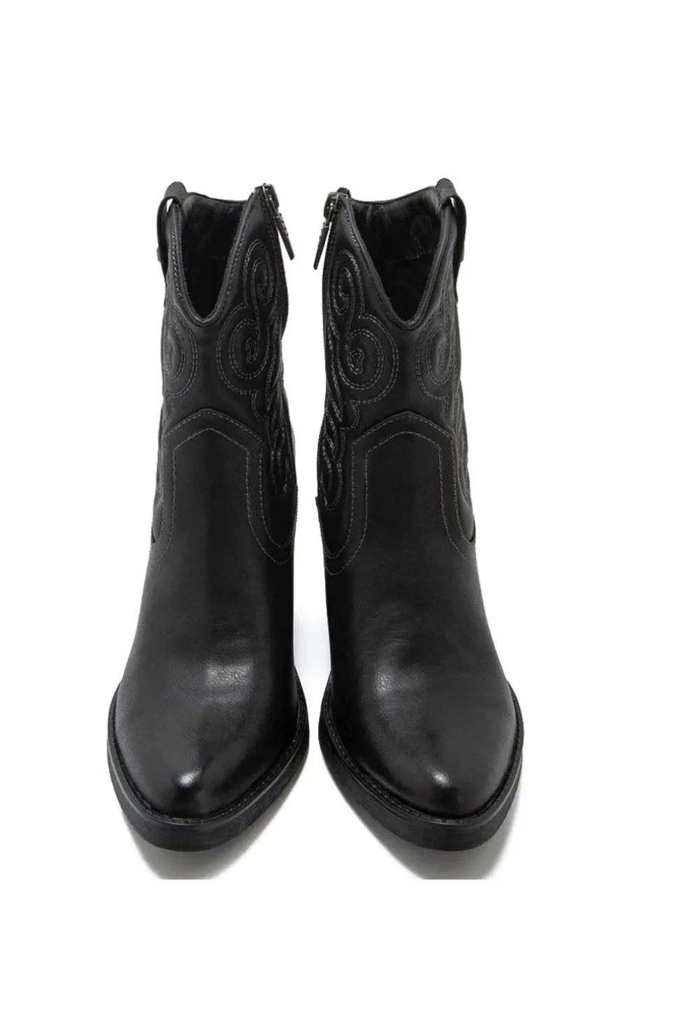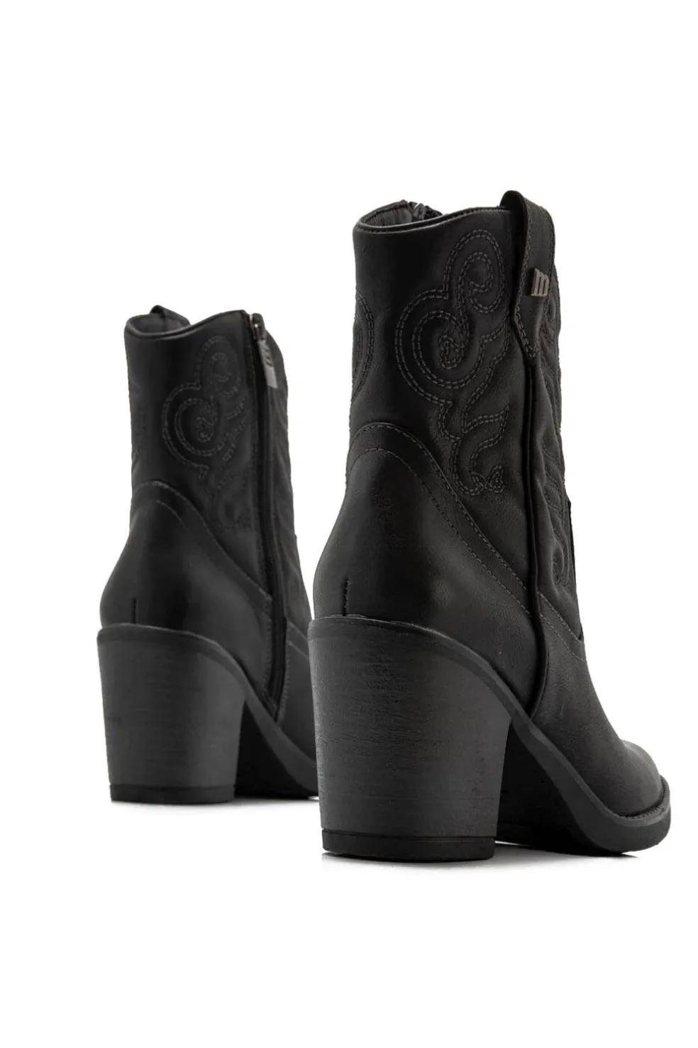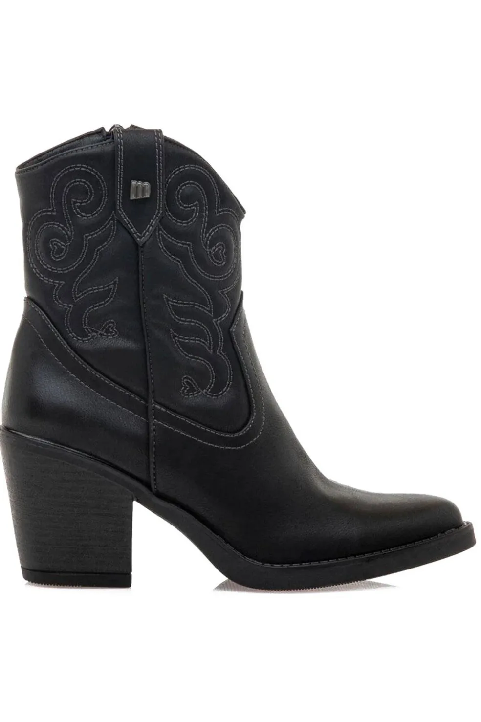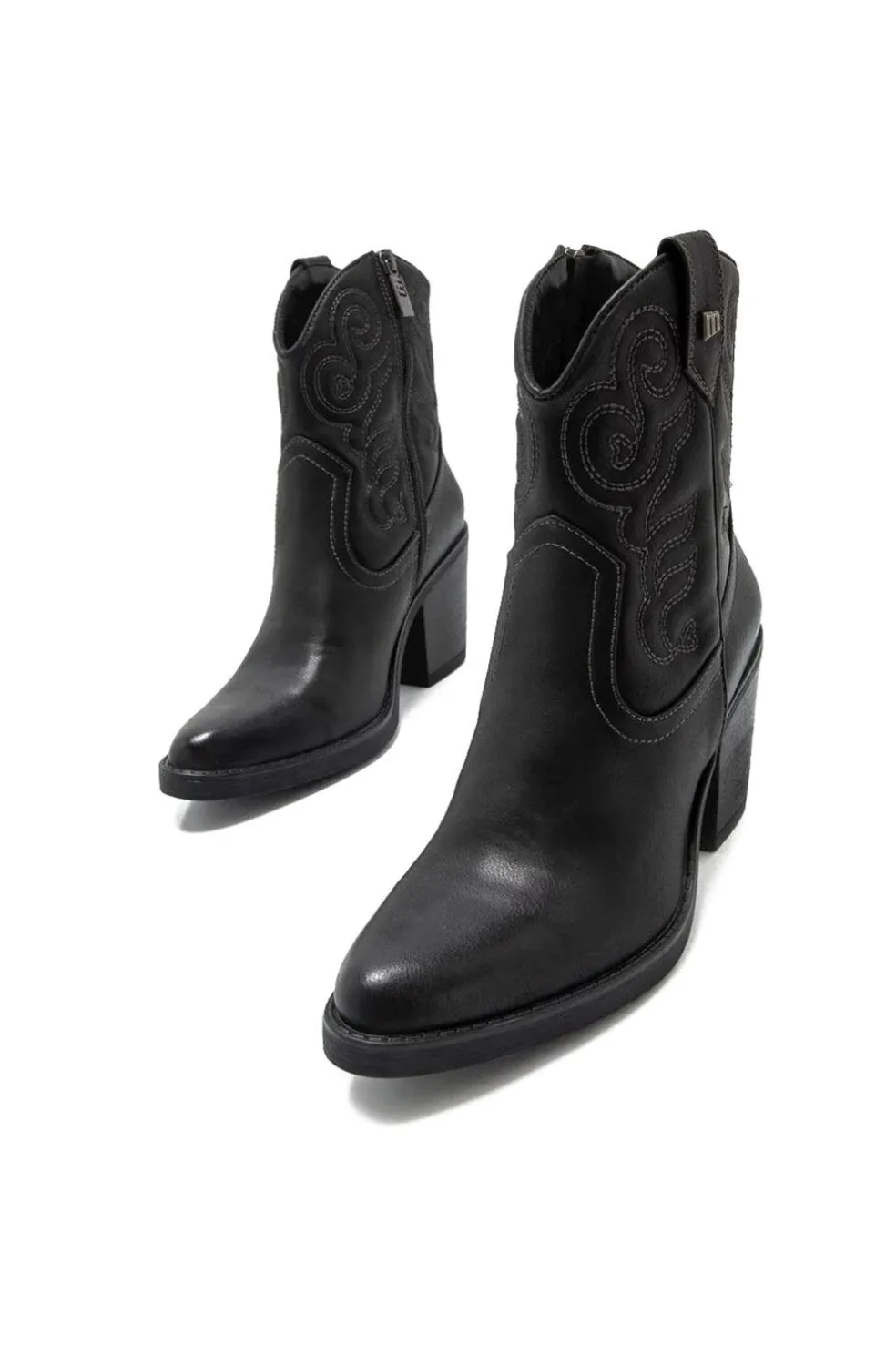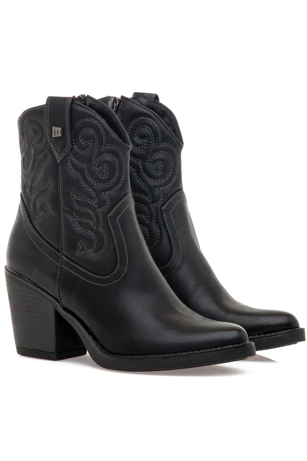 Botín Tijuana Mustang para mujer. Con diseño en color negro, destaca por sus bordados en la caña y su tacón estilo western. Cierre de cremallera en el lateral de la caña. Combínalos con tus bolsos favoritos Mustang. Con certificado VEGANO sellado por INESCOP, el cual garantiza que la naturaleza química principal del material no se corresponde con fibras de origen animal.