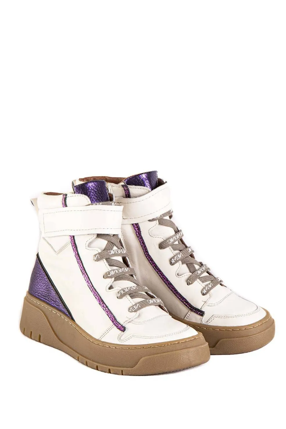 Bota deportiva Nemonic fabricado en piel con plataforma de 4.5 cm, ajuste de cordones elásticos y tira de velcro. La suela de goma es antideslizante.