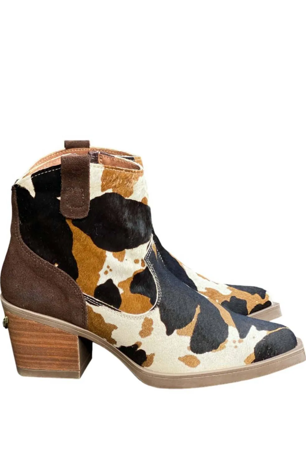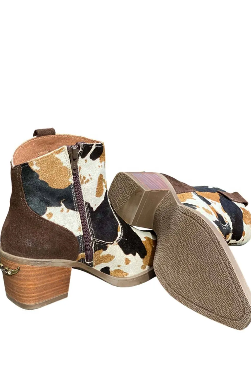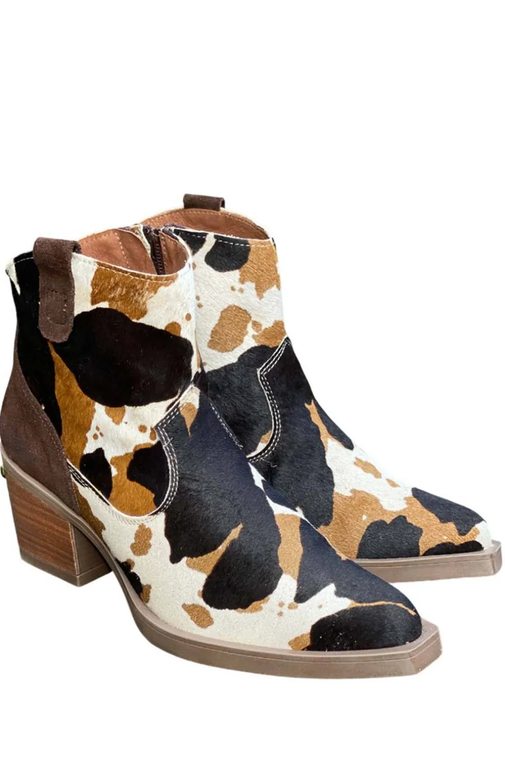 Conoce el nuevo botín 2413 de la marca Nemomic. Su elegante estampado pelo vacuno lo convierte en una pieza única y moderna. La cremallera lateral permite ponérselo con facilidad, mientras que el tacón cuadrado de 7 cm proporciona una altura cómoda y segura.