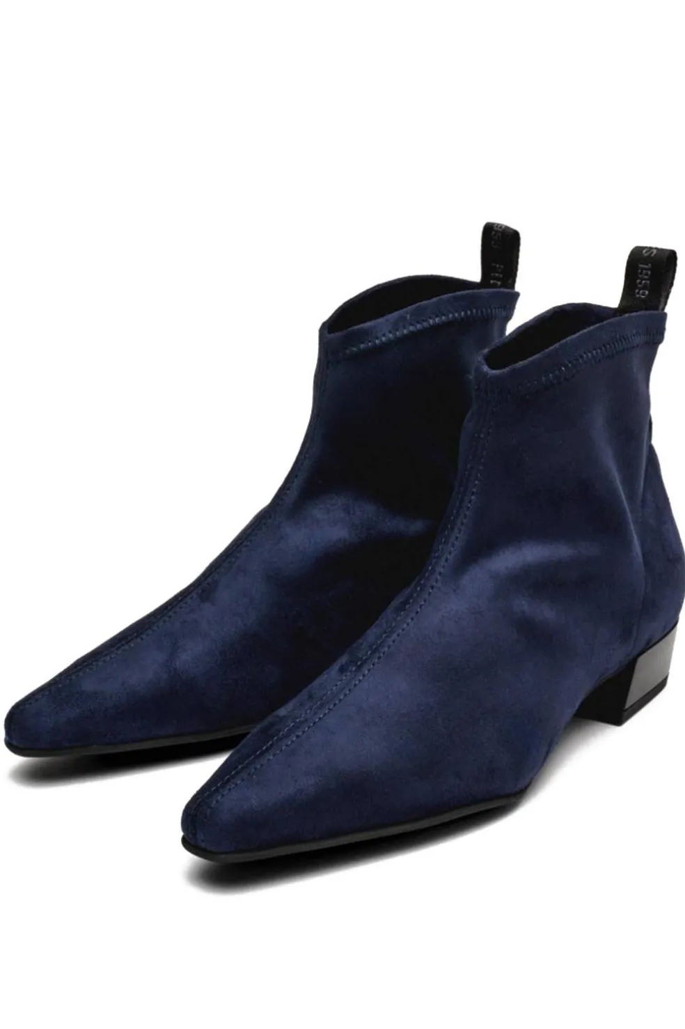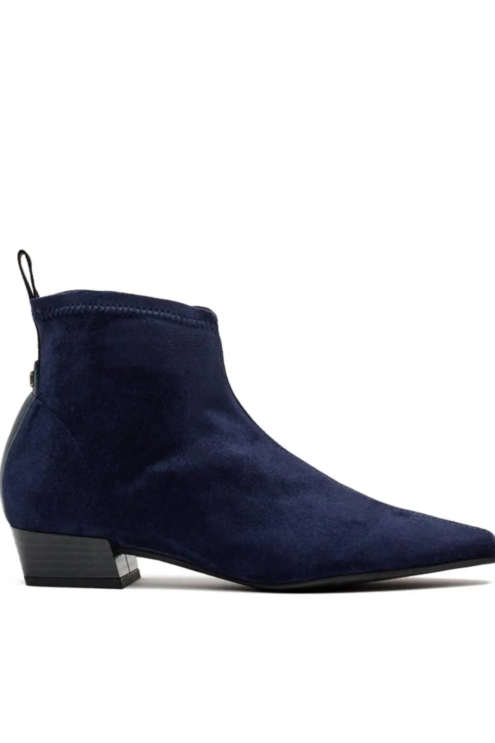 Botines de tacón bajo en tejido elástico efecto ante. El material suave ofrece una gran comodidad y soporte durante todo el día. Con su diseño elegante y moderno, se adaptan fácilmente a todos tus atuendos, desde el día a día hasta las ocasiones más elegantes.