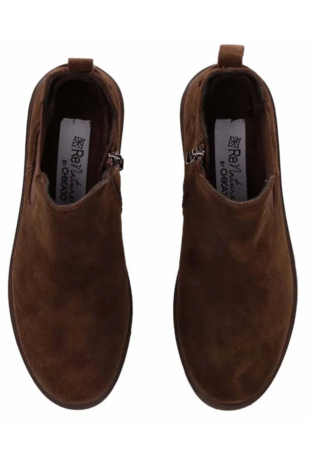 Botín de piel con detalles elásticos: Este botín de media caña combina estilo y comodidad con su diseño de ante y paneles elásticos laterales que facilitan el calce. La lengüeta trasera añade practicidad, mientras que la suela robusta y texturizada proporciona tracción adicional. ¡Perfectos para un look casual y sofisticado!