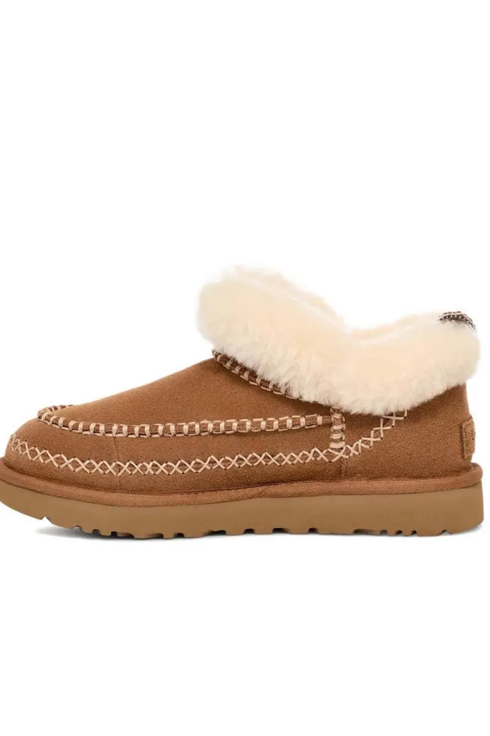 Imagina que tus Classic Ultra Mini se van de viaje a los Alpes y vuelven con un aire totalmente nuevo. Eso es lo que les ha pasado a nuestras Classic Ultra Mini Alpine. Confeccionadas con nuestro suave forro UGGplush, esta versión de las Classic Ultra Mini presenta un lujoso cuello de piel de oveja y las costuras tradicionales.