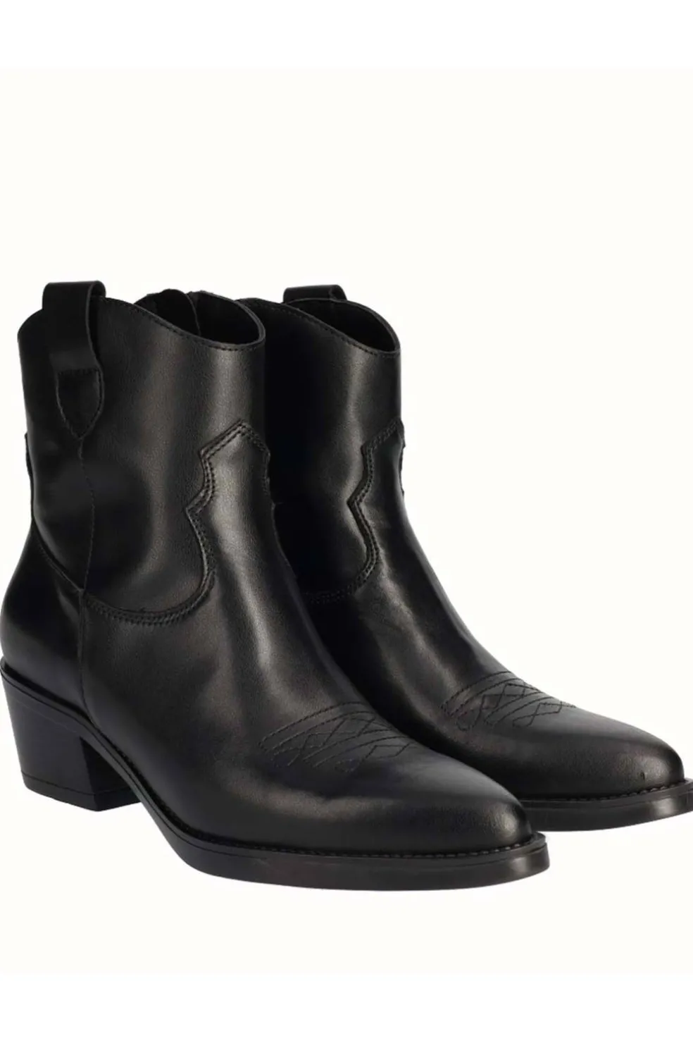 Botín de piel Viguera en color negro, confeccionado en piel lisa de alta calidad que aporta un acabado elegante y atemporal. Incorpora cierre de cremallera lateral para un calce rápido y cómodo. Su tacón cuadrado de 5,5 cm proporciona estabilidad y comodidad, mientras que la caña de 18 cm, junto con su diseño de inspiración campera, lo convierten en una pieza versátil que combina a la perfección con looks casuales o de aire rústico. Ideal para el uso diario con un toque de estilo.