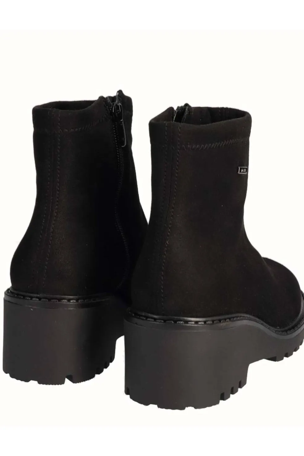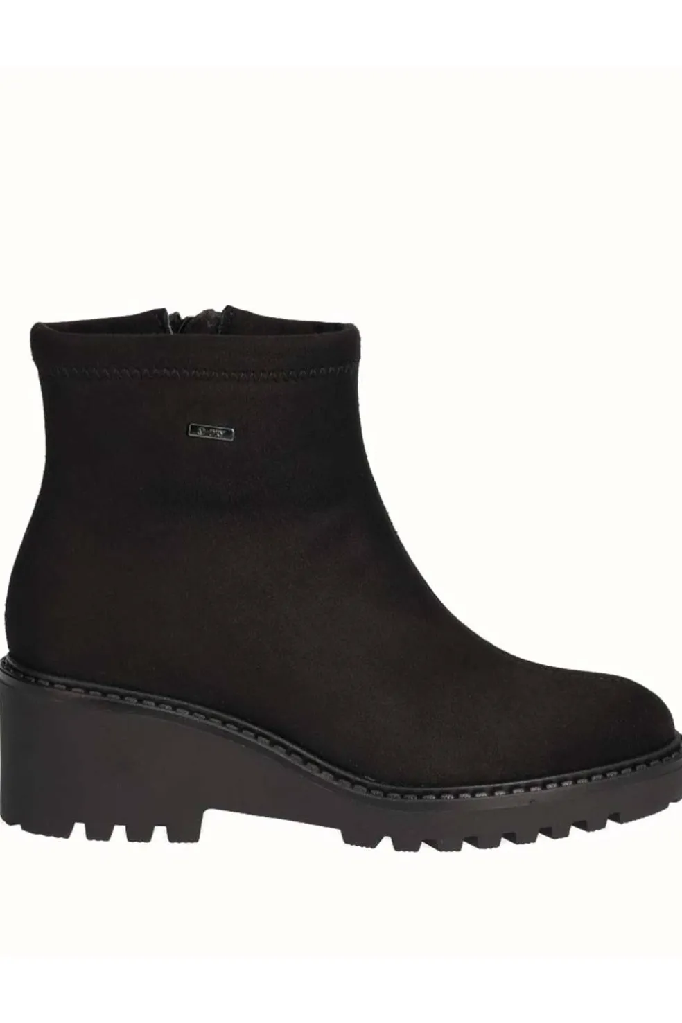 Botín de serraje de Viguera en color negro, confeccionado en suave piel que aporta un acabado elegante y versátil. Incorpora cierre de cremallera lateral para un ajuste rápido y práctico. Su diseño cuenta con una cuña de 6 cm y plataforma de 2 cm, que proporcionan altura sin renunciar a la comodidad. Ideal para el uso diario, combina estilo y confort, adaptándose a diferentes looks de temporada.