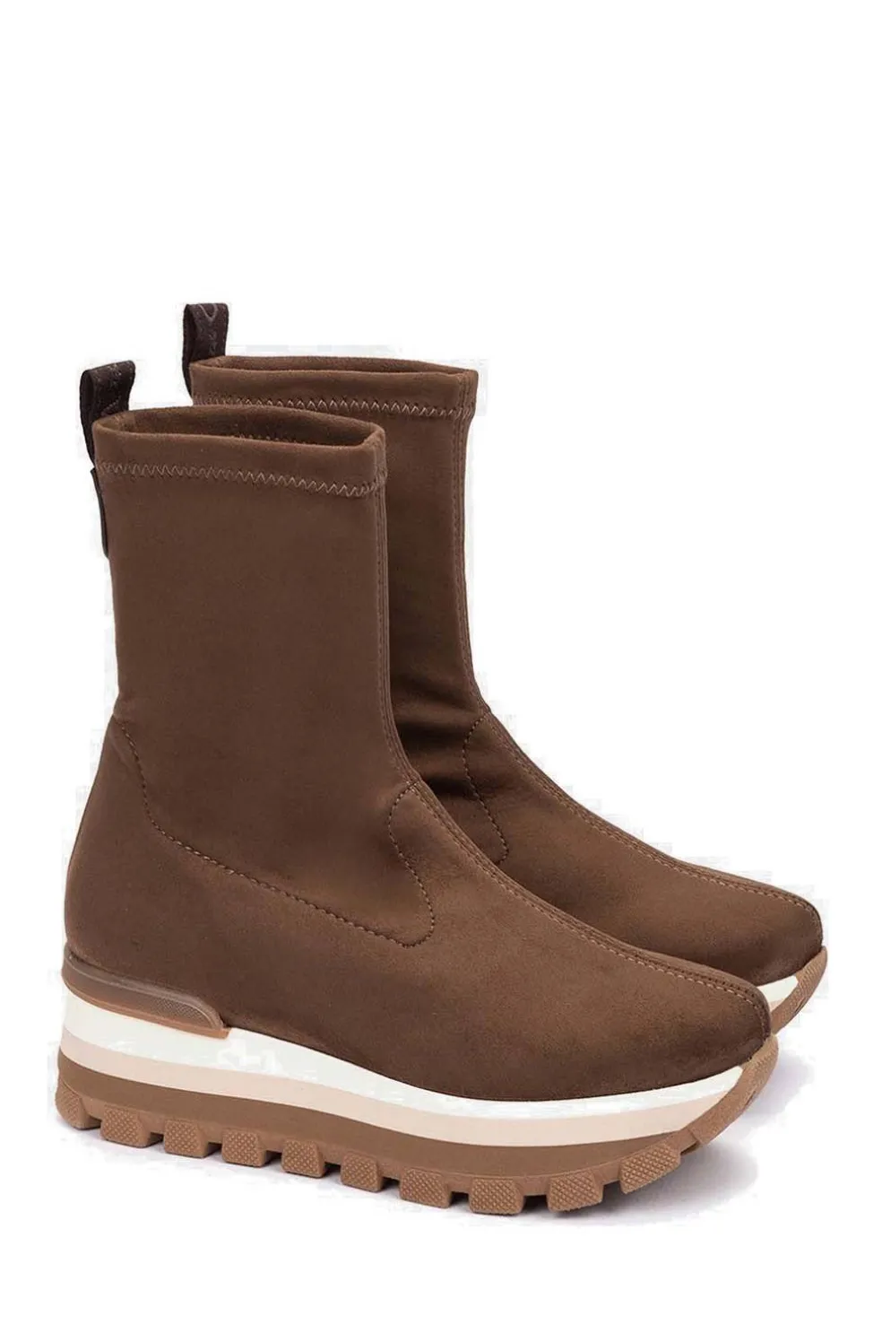 Botines deportivos de ante elástico. El estilo casual continúa siendo tendencia y Pedro Miralles apuesta por él con este modelo que podrá llevar con vaqueros o con sus looks más informales. Altura tacón: 5 cm. Altura plataforma: 4 cm