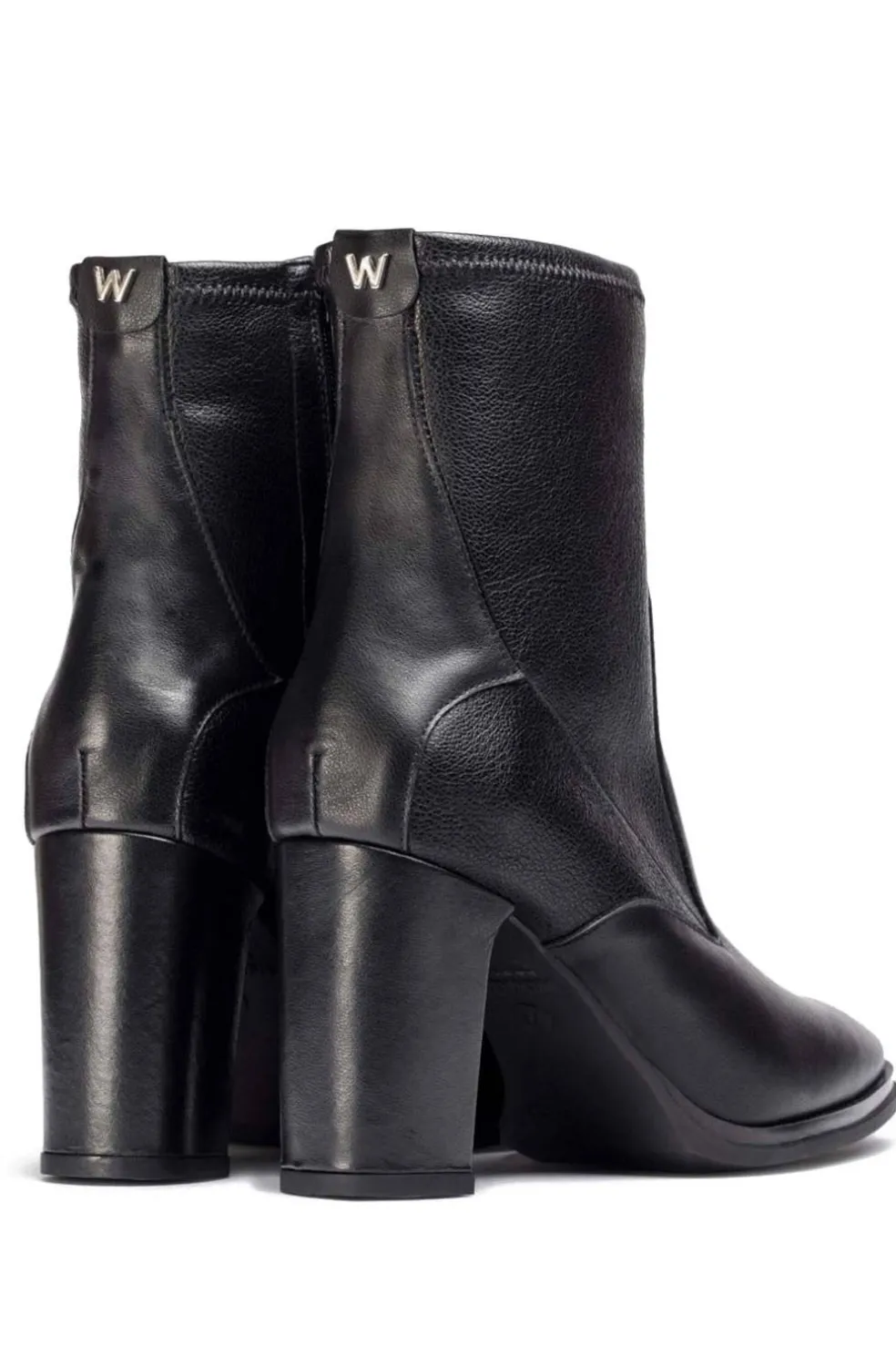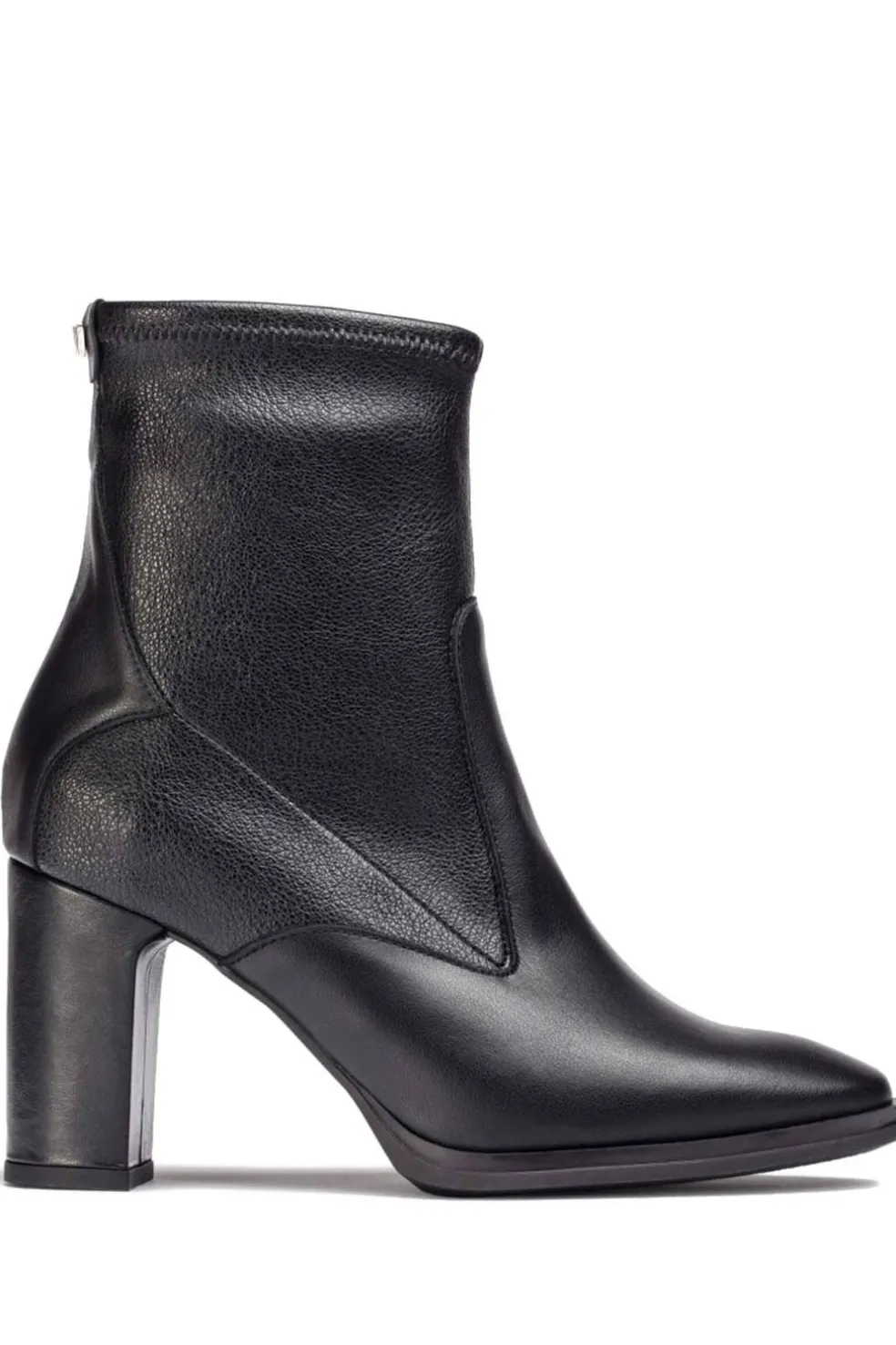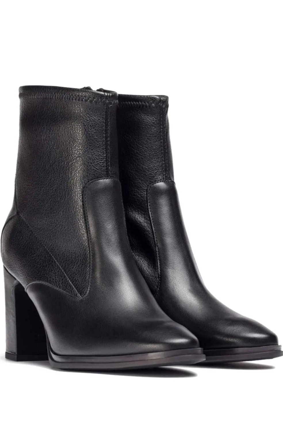 Botines con tacón ALIVE fabricados en combinación de piel y elastano negros. Elegante modelo con punta afilada, detalles de combinación de materiales y cierre mediante cremallera lateral. Su suela de goma flexible aporta un extra de comodidad, combinado con la plantilla interior de MemoryGel que asegura una pisada amortiguada en cada paso.