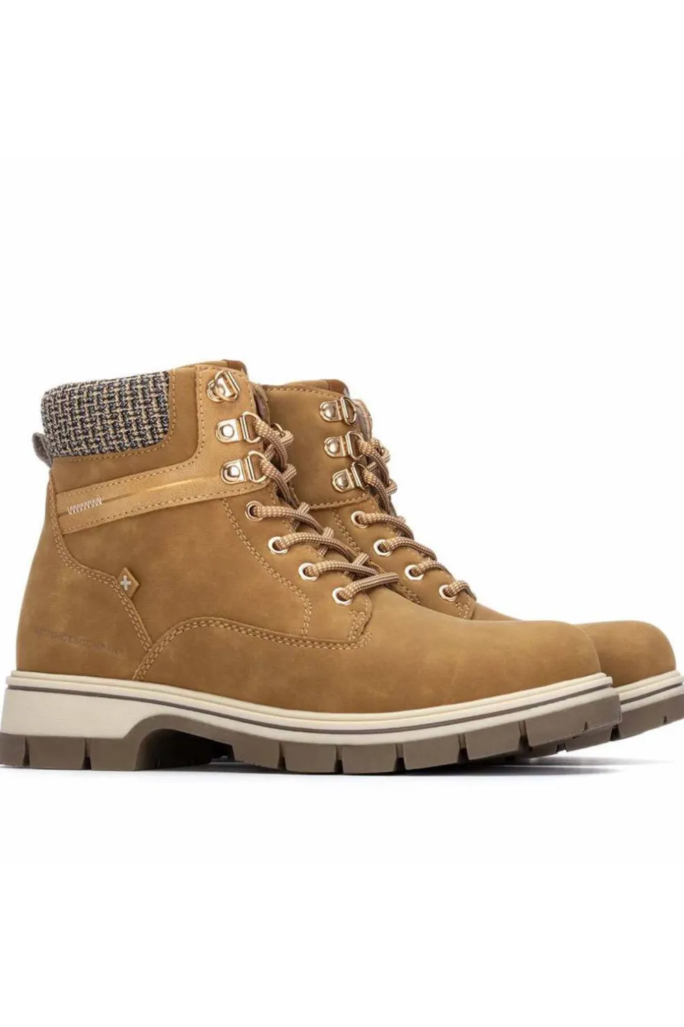 Botín de mujer, de la marca Xti. Estilo militar, con un diseño moderno y elegante. Su suela plana ancha de 4 cm es antideslizante, lo que proporciona estabilidad y confort en cada paso. Cuenta con cremallera interior, que facilita su colocación y añade un toque práctico. Este botín es ideal para días fríos o incluso nieve, ofreciendo comodidad y protección durante el invierno sin perder estilo. Con plantilla extraíble.