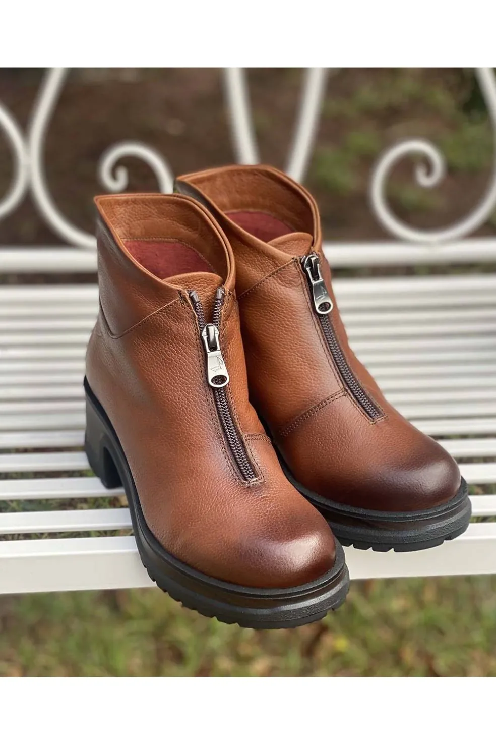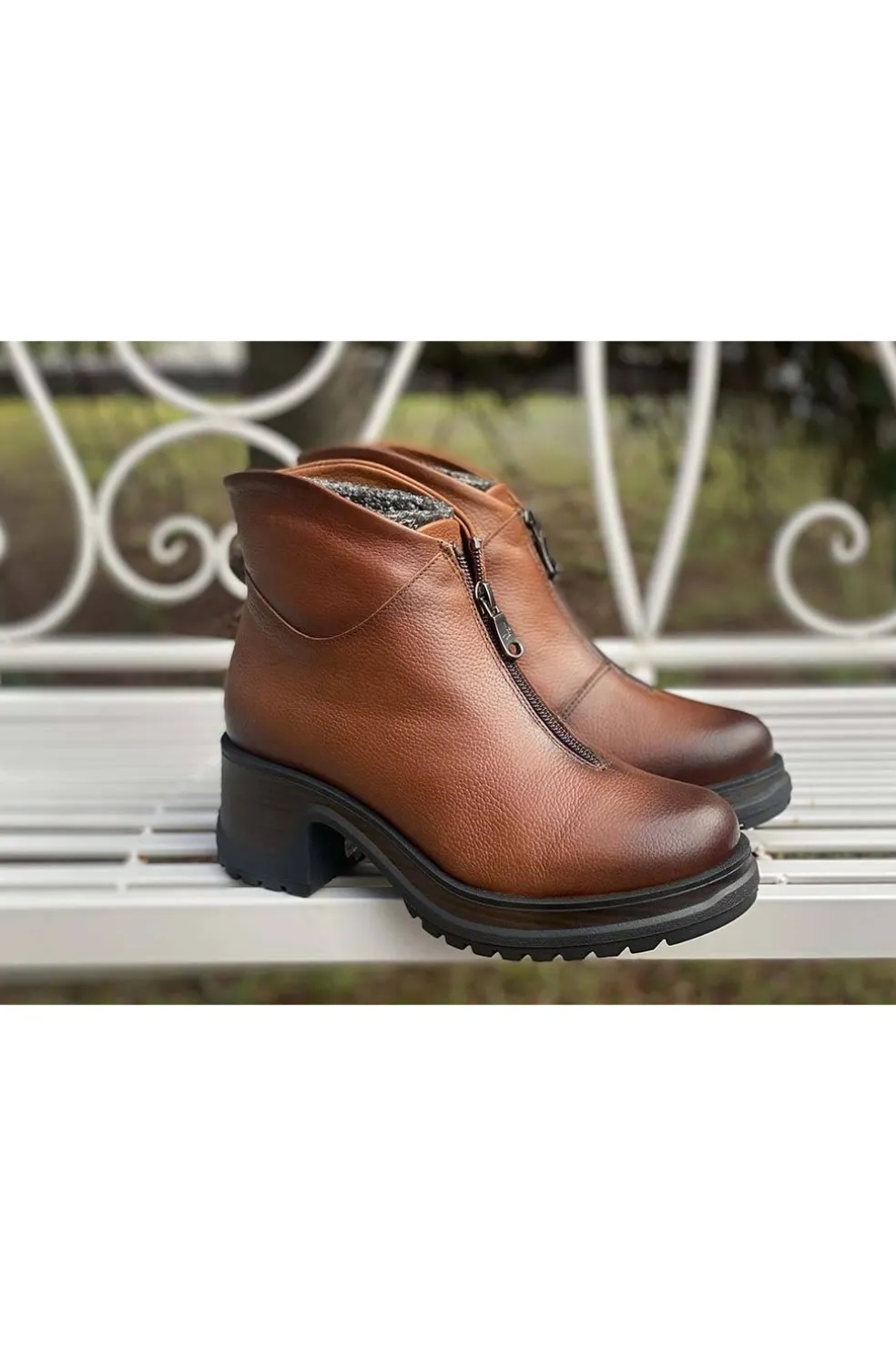 Botín de mujer en piel en color cuero.