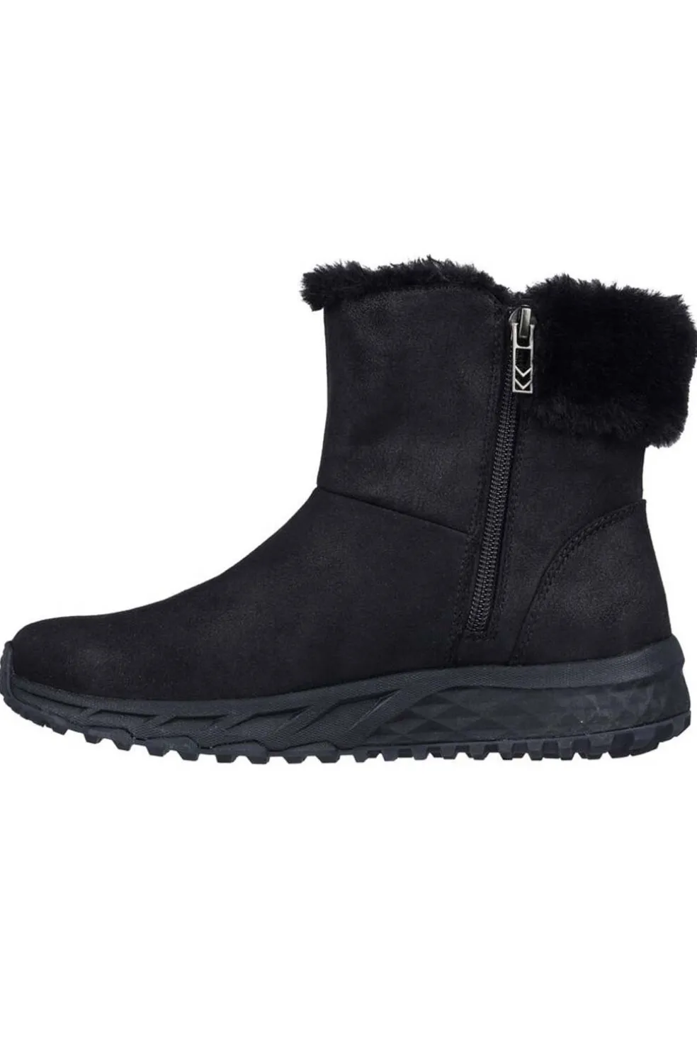 Empieza la temporada con la comodidad afelpada de las Skechers Escape Plan – Cozy Collab. Esta bota con cremallera para clima fríos cuenta con una parte superior de microcuero sintético repelente al agua con ribete y forro de pelo sintético, además de una plantilla Skechers Air-Cooled Memory Foam®.