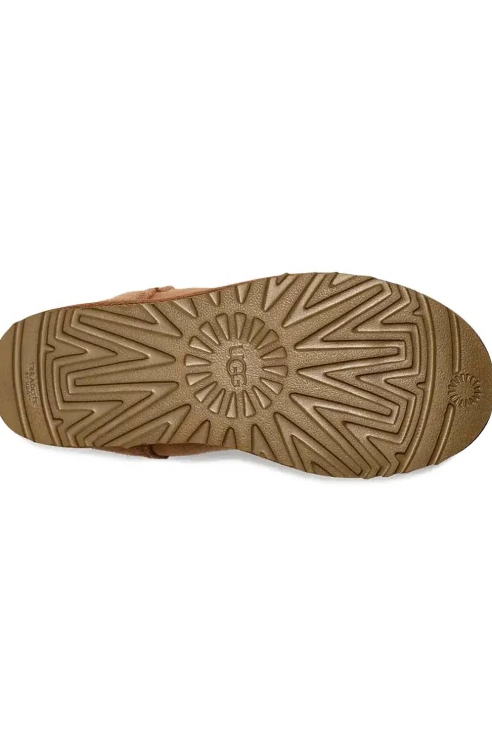 La suela exterior de este producto es una suela exterior de EVA de caña de azúcar, que es un compuesto responsable que utiliza espuma de caña de azúcar que nos permite reducir la dependencia de los combustibles fósiles al reemplazar el etileno a base de petróleo, o una suela exterior Treadlite by UGG™.