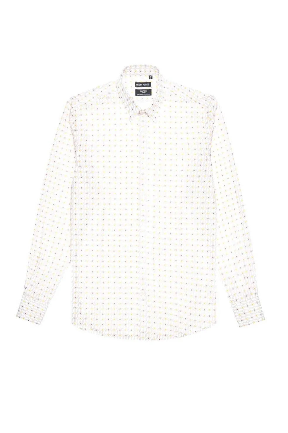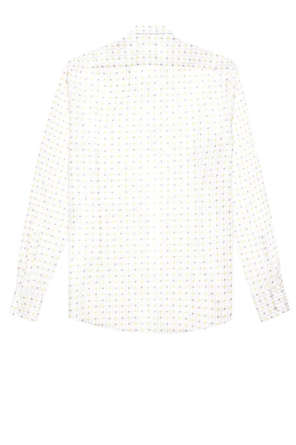 Camisa hombre de corte slim fit y composicón algodón con un estampado integral en tonos amarillo y beige.