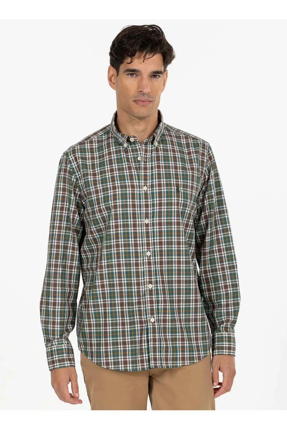 Camisa de manga larga con print de cuadros multicolor. Confeccionada en 60% algodón y 40% poliéster. Cuello botón. Cierre frontal con botones. Logo de elPulpo bordado en el pecho. Puños abotonados. Custom fit: corte ligeramente entallado.