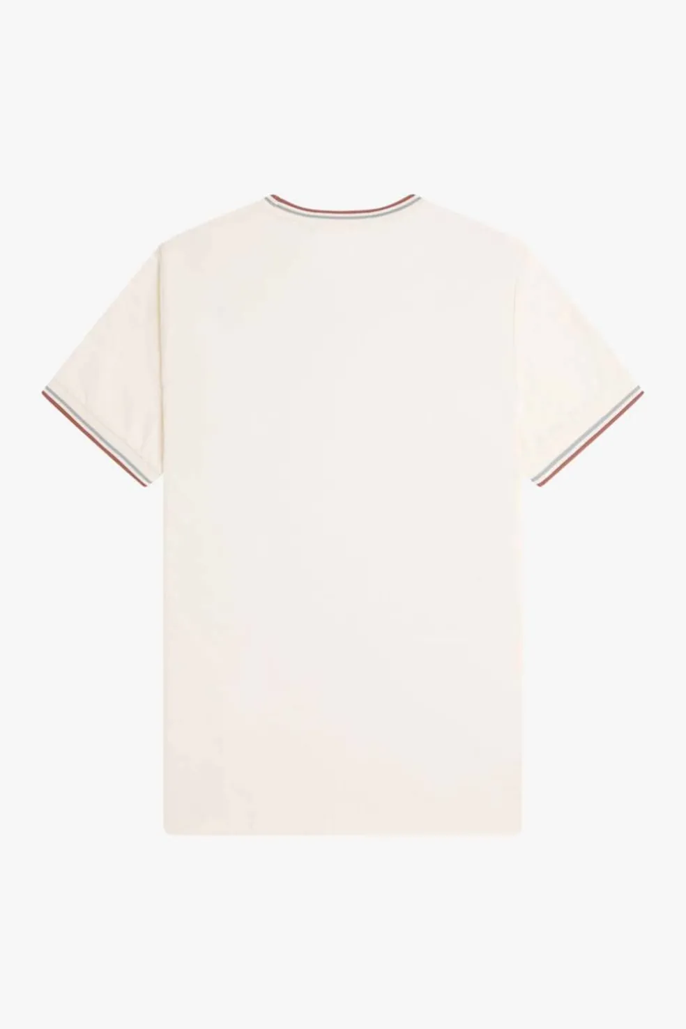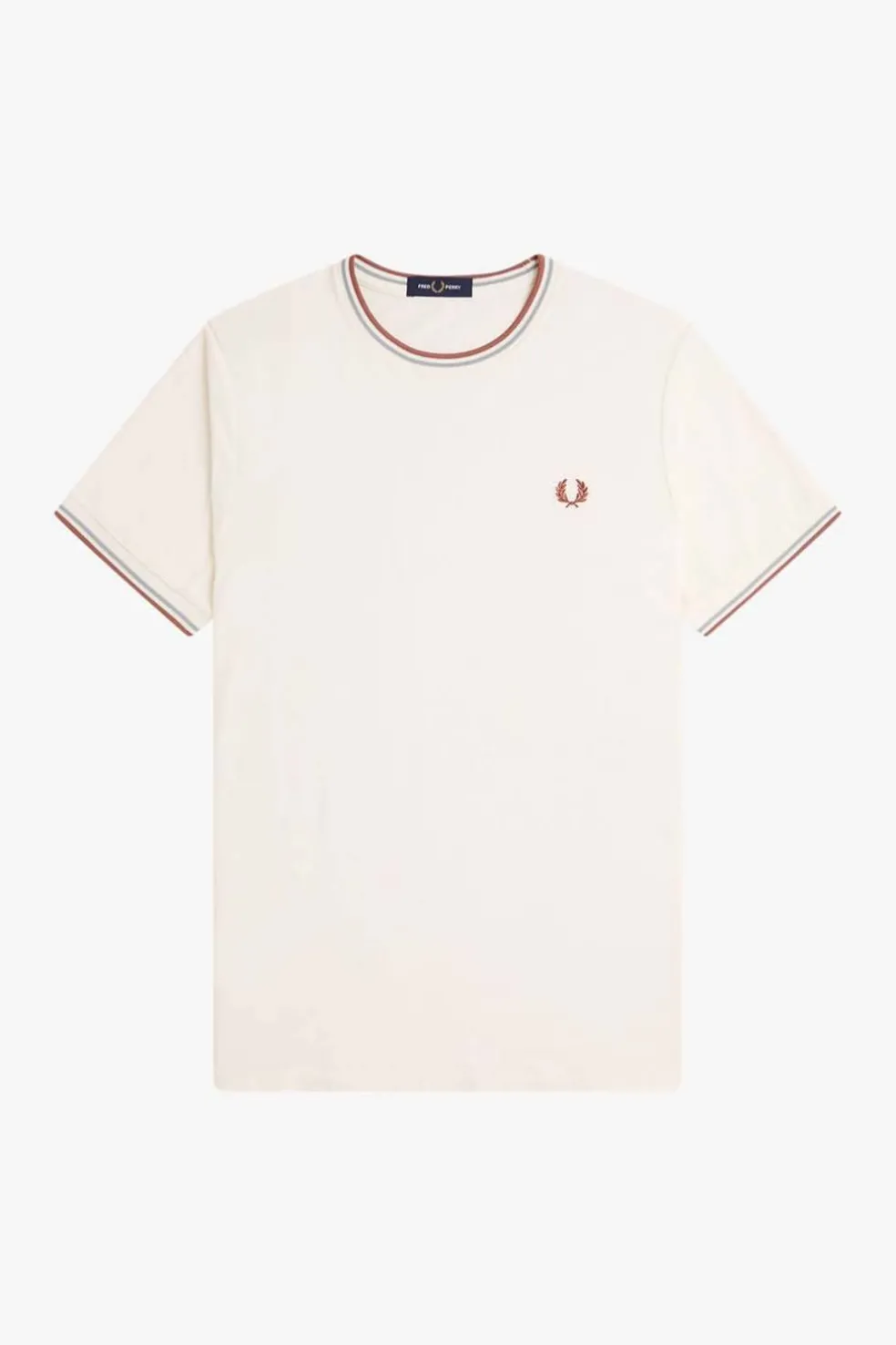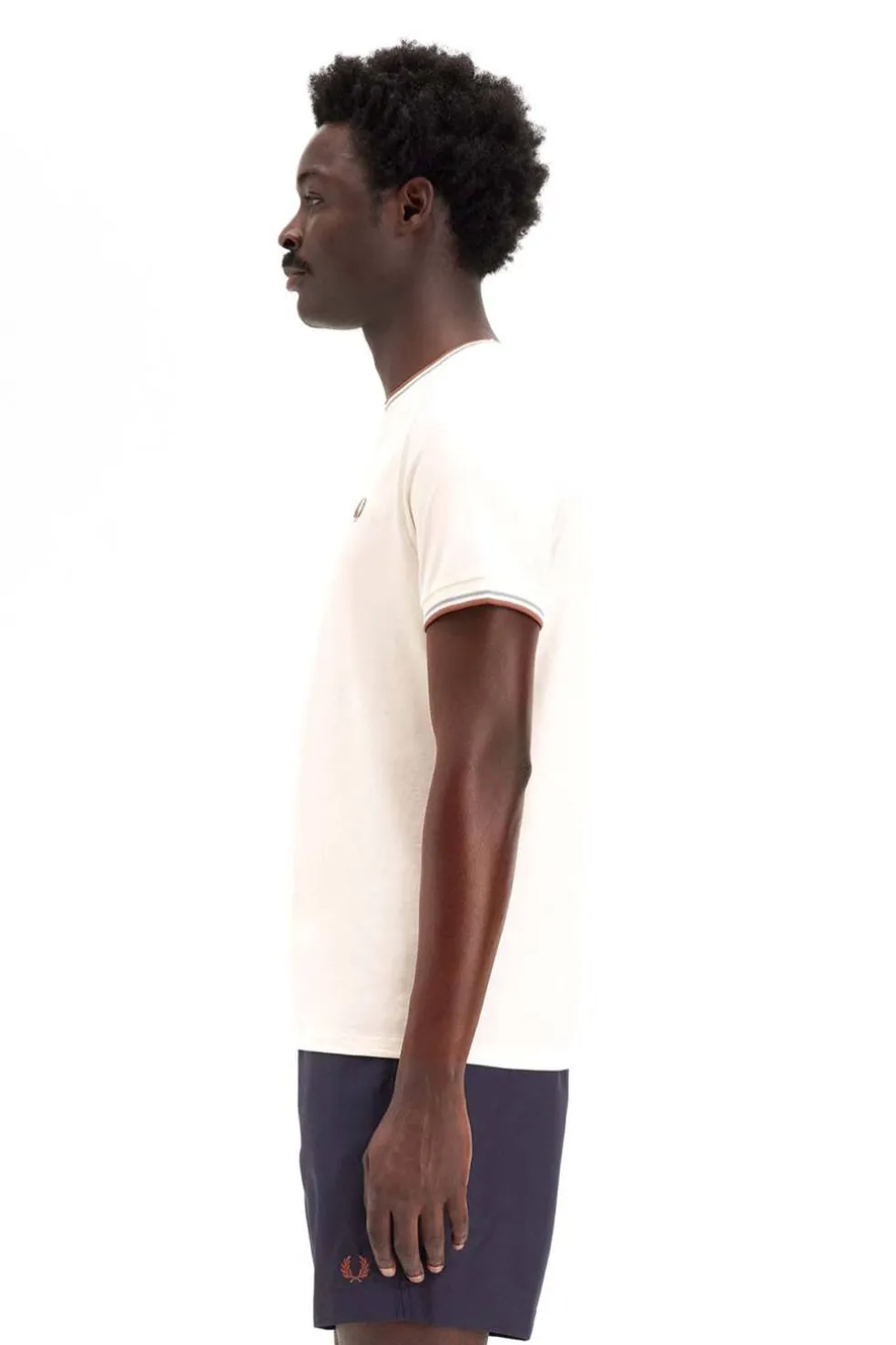 Cuenta la leyenda que un cliente de Lillywhites pidió personalizar un polo liso de Fred Perry con los colores de su equipo de fútbol y así nació nuestro ribete con dos franjas. Este elemento forma parte de nuestro ADN, ya que solo nosotros lo usamos en la proporción de grosor 5-4-4. Nuestra camiseta de cuello redondo, diseñada con nuestros inconfundibles detalles, presenta el ribete con dos franjas y la corona de laurel bordada en un color a juego. Absolutamente Fred Perry.