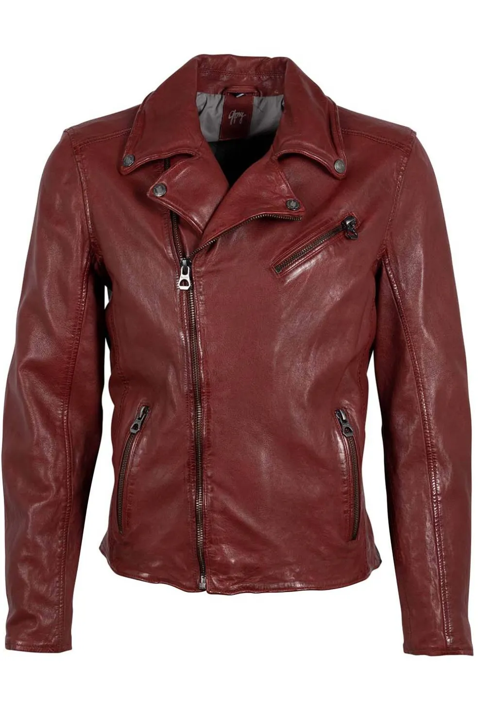 Cazadora biker de estilo motera, piel exterior libre de cromo y forro textil. Ajuste regular fit. Tiene 3 bolsillos exteriores y 2 interiores. Largo en talla XL: 67 cm.