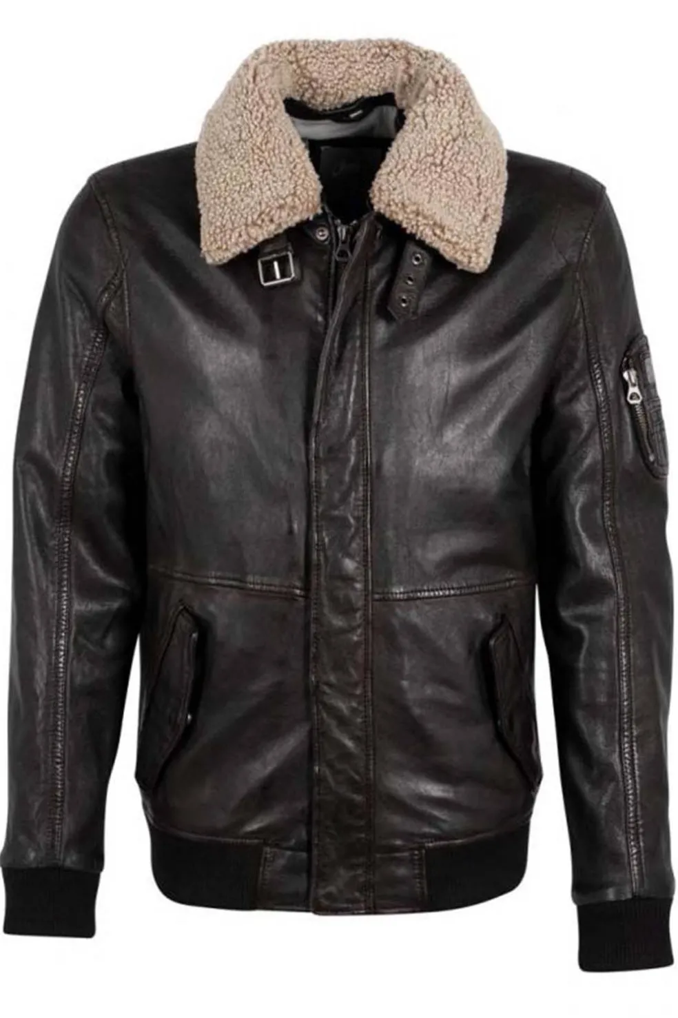 Cazadora de cuero marrón de Gipsy, una prenda que combina estilo y calidez. Con un suave borreguillo en el cuello desmontable con cremallera. Cuenta con dos bolsillos laterales, tres bolsillos interiores y uno en la manga, ofreciendo espacio práctico para tus esenciales. Ideal para un look casual y moderno, esta cazadora es perfecta para cualquier ocasión.