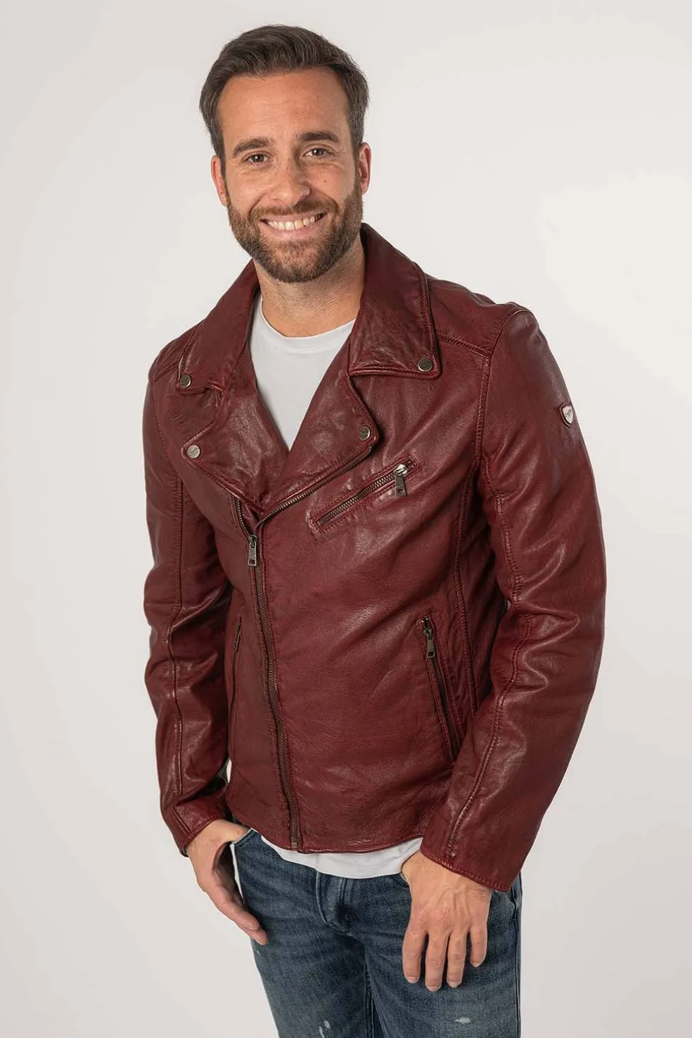Cazadora biker de estilo motera cruzada y forro textil. Ajuste regular fit. Tiene 3 bolsillos exteriores y 3 interiores.