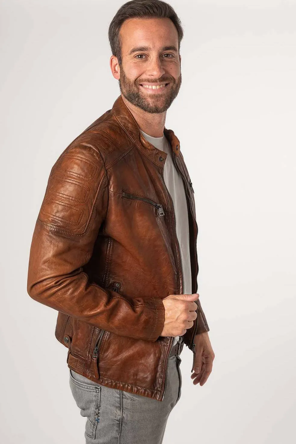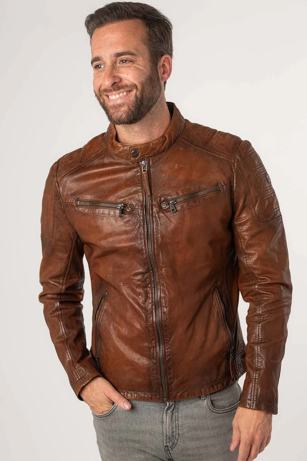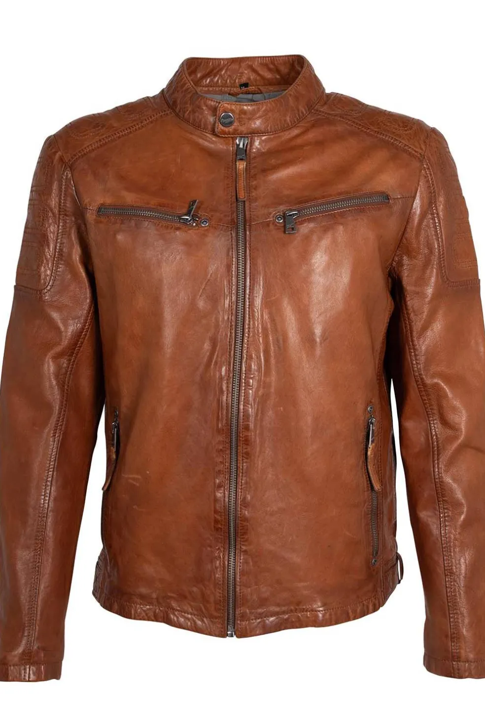 Esta elegante cazadora de piel de cordero de la marca Mauritius en color coñac combina estilo y funcionalidad. Cuenta con 4 bolsillos delanteros con cremallera, cremalleras en las mangas y bolsillos interiores para mayor comodidad. El logo de Mauritius en el brazo añade un toque distintivo. Ideal para cualquier ocasión, es una prenda imprescindible para tu armario.