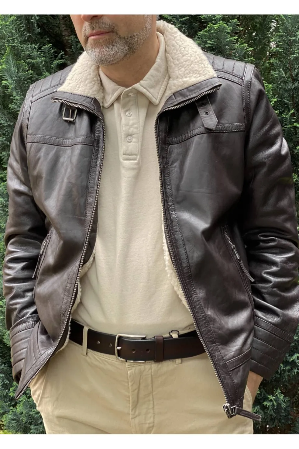 La chaqueta de cuero para hombre de la marca Medinapiel en color marrón combina estilo y comodidad en una prenda de alta calidad. Confeccionada en piel de cordero suave, presenta un interior forrado con borreguillo en la zona del cuerpo, lo que proporciona calidez y una sensación acogedora. Sus bolsillos laterales con cremallera y los bolsillos interiores ofrecen funcionalidad y seguridad. La prenda se ajusta perfectamente al cuerpo, brindando un aspecto moderno y elegante. Ideal para un look casual sofisticado, esta chaqueta es una opción versátil y duradera para cualquier ocasión.